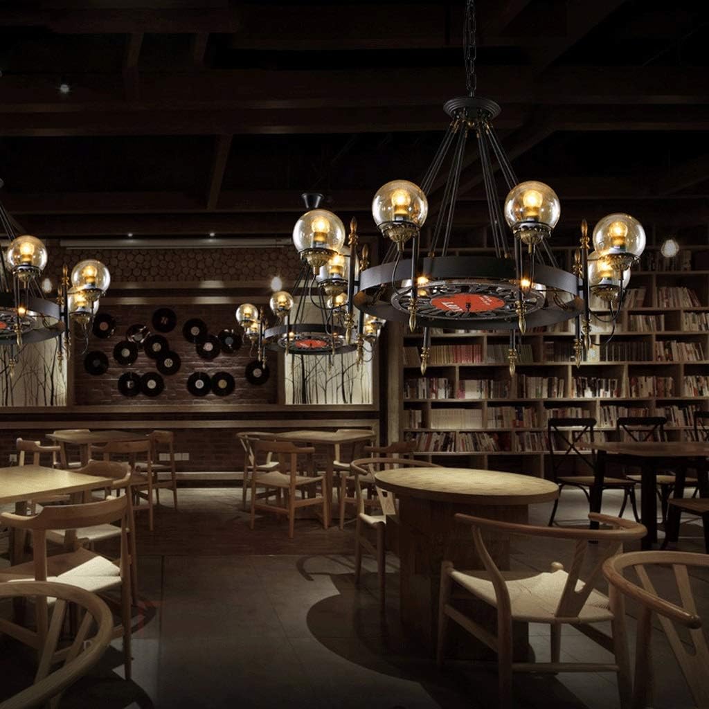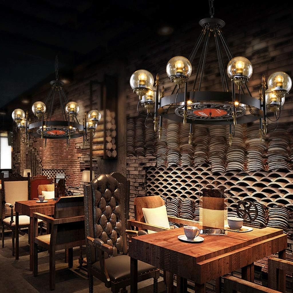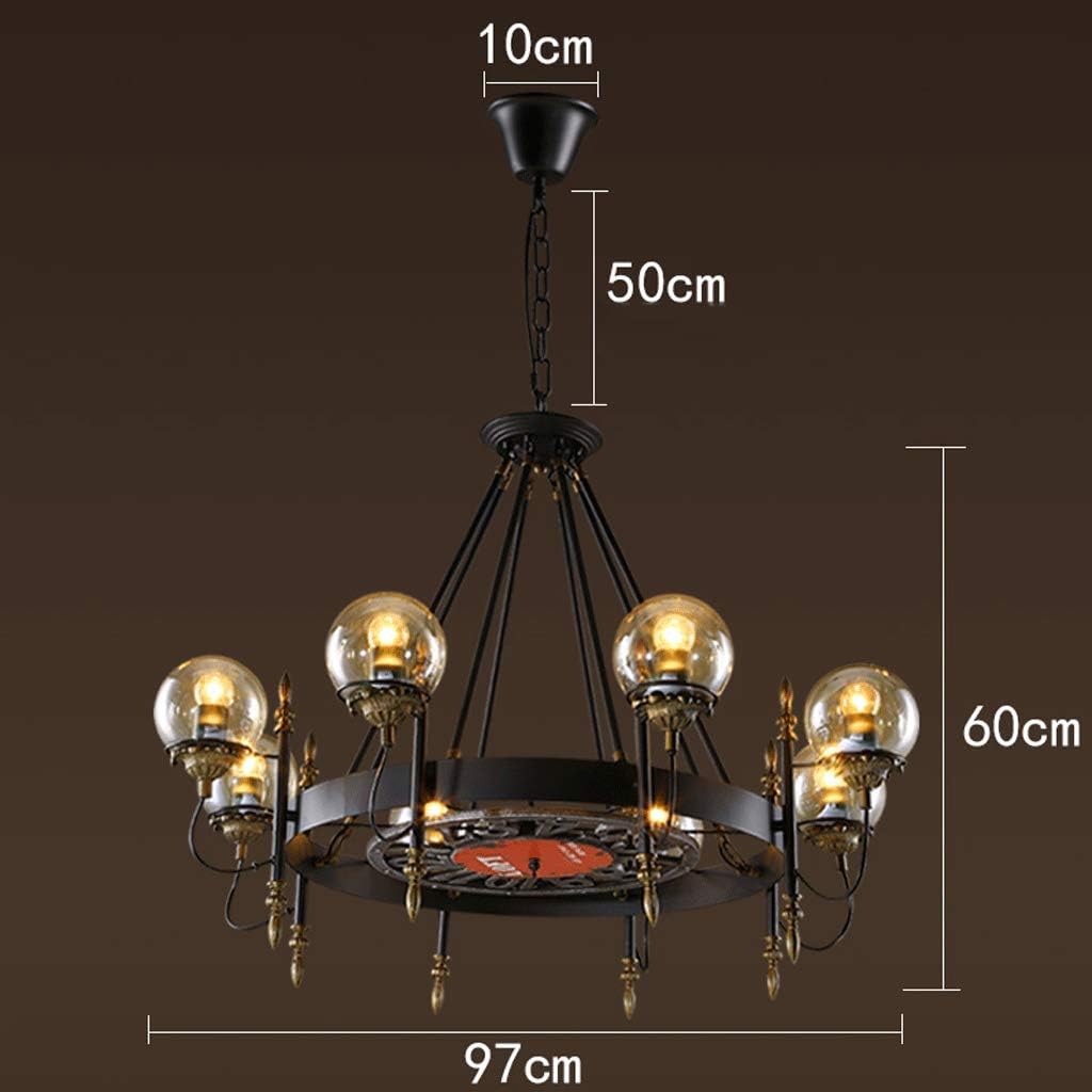 Chandelier - Retro Industrial Style Restaurant Bar Clock Round Glass Ball Wrought Iron 77×55cm 97×60cm Hanging Chain: 50cm V (Size : 97 × 60cm)