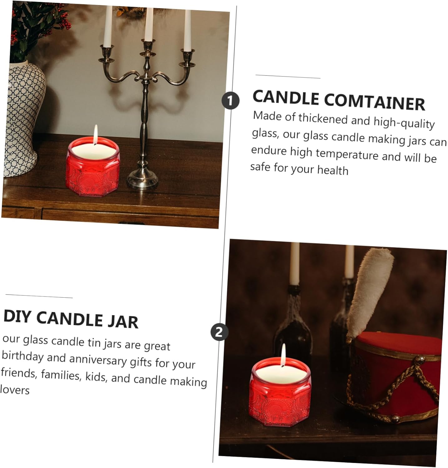 Package List 14 x candle cups Characteristics - Size: 6.50X6.50X5.00cm/ 2.55X2.55X1.97inch glass jars for candles. - Material: Glass jar for making candles. - Made of thickened and glass, our glass candle making jars can endure high temperature and will be for your health bulk candles jars. - With embossed design, our glass candle containers are delicate in appearance, unique for candle holding and the topper lid will keep the inside thing or candle candles jars. - The can provide you a long period and multiple times using storage jars. - You can also make your own unique candles in these tins and send to your friends as DIY ! candles jar - Apart from being used as candle making containers, our reusable glass candle jars with lids can be used for sugar, coffee bean, , beeswax, tea, coins, as well as other crafts storage jars with lids.Goods Descriptionbulk candles jars Fulling of beautiful embossed patterns, our glass candle tin jars are great birthday and anniversary your friends, families, , and candle making lovers.glass jars for candles With embossed design, our glass candle containers are delicate in appearance, unique for candle holding and the topper lid will keep the inside thing or candle