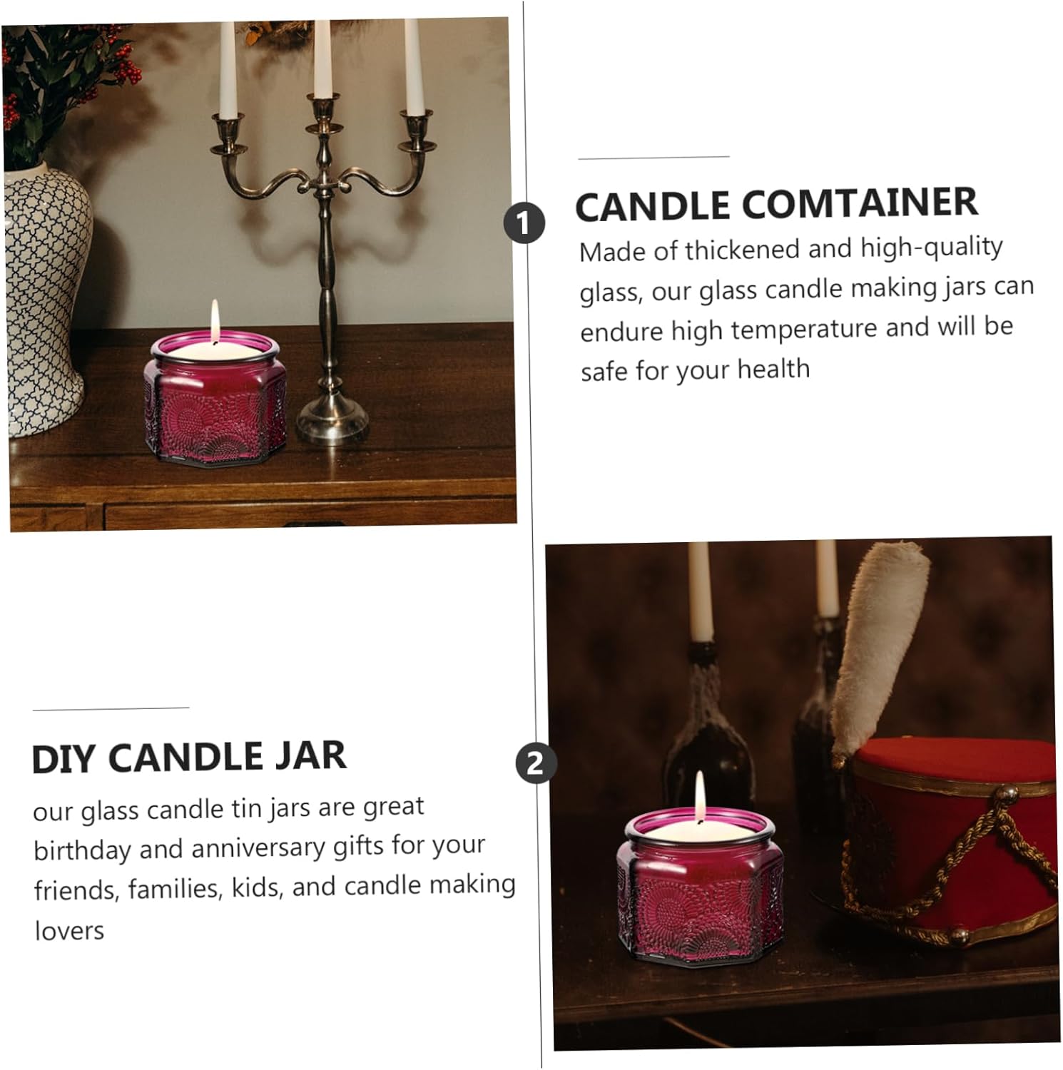 Package List 14 x candle cups Features - Size: 6.50X6.50X5.00cm/ 2.55X2.55X1.97inch candle making jar. - Material: Glass glass candle jar. - The candle jar adopts material, you can use it for a long time candle can. - With this candle tin for holding DIY scented candle, you can yourself and enjoy a quiet moment candle container. - Beautiful outlook design, for party decorations and will give your event a romantic and peaceful atmosphere scented candle tin. - To make aromatherapy scented candle to create atmospheres, relief and relaxation for you and guests, for home, church, hotel, office, yoga , shower room and more places aromatherapy candle jar. - A friends, families in birthdays, Anniversaries or other special days storage can.Goods Descriptioncandle can Whether you're looking for your next DIY project or a hands-on activity with your , these candle containers with tin lids are a great start! They make practical that you will surely use.candle storage jar materials, safe and