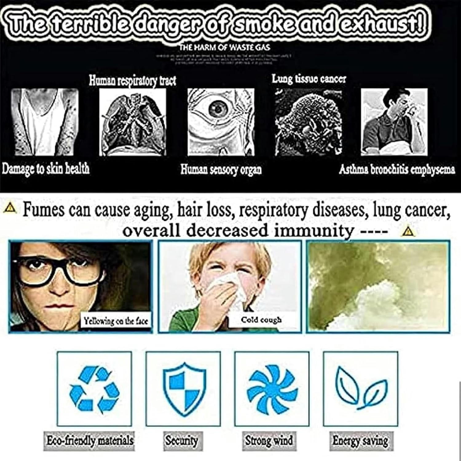 :This model is anti-freeze, anti-frost, anti-high temperature, anti-corrosion, anti-rust, and durable.Wind Ambassador fuels full burn/Fast temperature rise, energy saving/Good wind effectThe installation is simple and quick, and the base design is closely connected with the chimney interface, which is firm and stable in operation.The motor has the advantages of power saving, durability, high efficiency and dustproof. Product name: Electric Draft Inducing FanWeight: 3kgVoltage: 110V (USA), 220V (Europe)Power: 100WSize: Diameter 15-20cmColor: image colorPackage: 1 * induced draw fan1. Turn off the power switch when installing or removing to avoid electric shock.2. The interface to the smoke outlet must be fastened with waterproof insulating tape.3. The installation at the interface with the chimney must be firm and the interface must be tightly integrated into the chimney for the best effect.