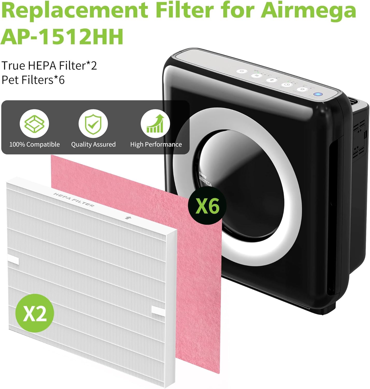 | Compatible Devices | Air Purifier, Compatible with Coway Airmega AP-1512HH, AP-1512HH(W), AP-1512HHS and 200M air Purifi-ers |