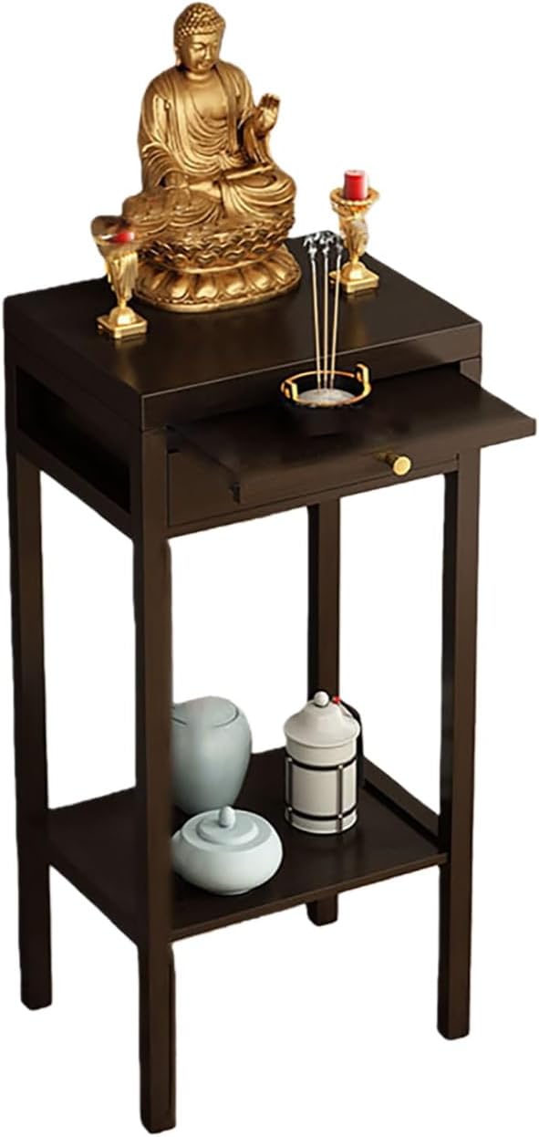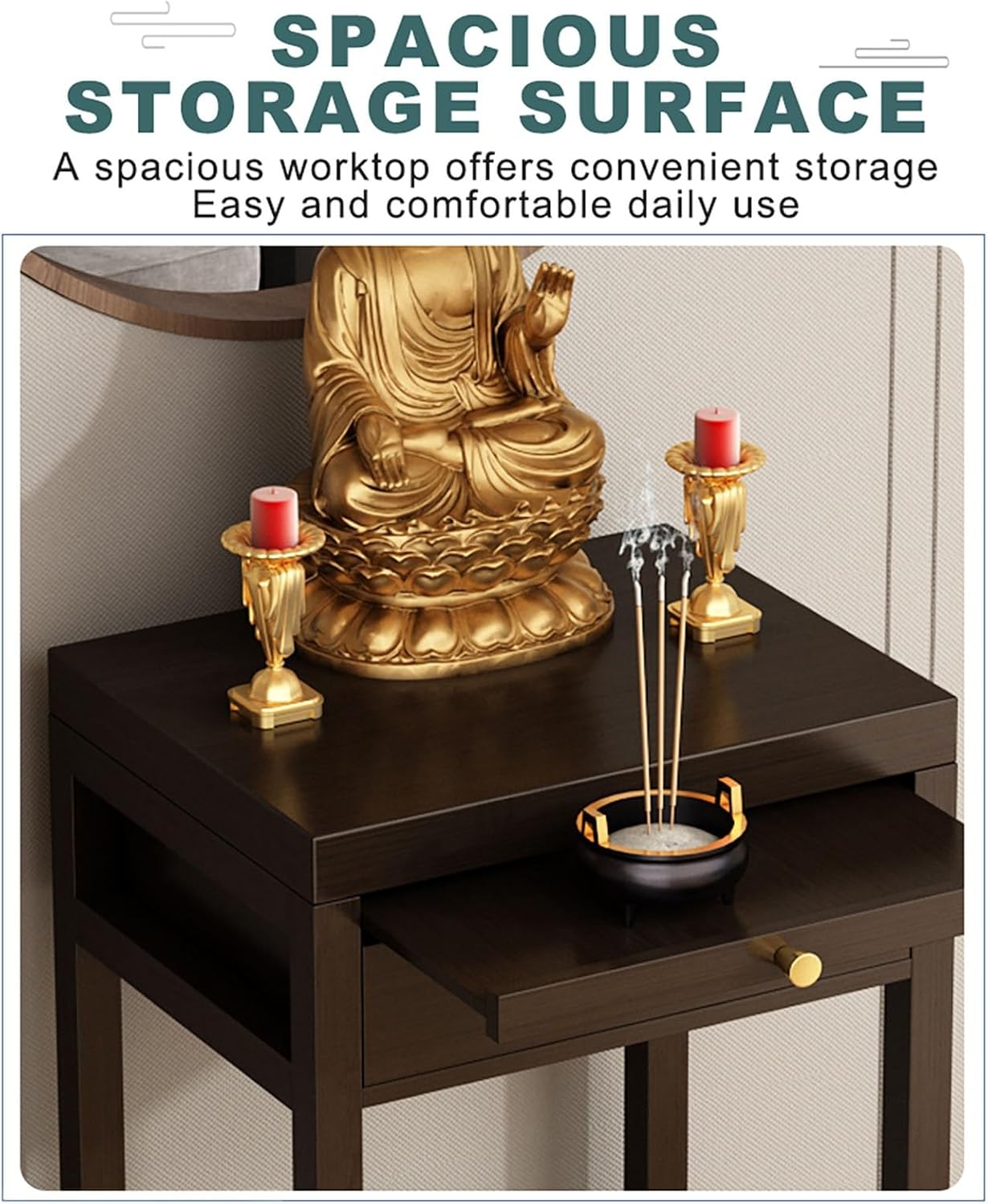 Personal Shrine Stand Chinese Buddha Niche Altar Cabinet with Pull-Out Tray Meditation Altar Table BambooProduct DescriptionFrom displaying sacred statues to storing ritual items, this cabinet is as practical as it is beautiful. The pull-out panel can be used as a temporary display shelf for offerings or meditation tools, while the enclosed cabinet space keeps less frequently used items neatly tucked away. Sturdy this altar table is made from practical bamboo—a material known for its resilience, natural resistance to moisture, and ability to resist warping or cracking over time. Unlike synthetic alternatives, bamboo offers eco-friendly practicality, ensuring your Buddhist Altar Table remains sturdy and beautiful through years of use.It features a spacious drawer paired with an extendable inner pull-out panel, allowing you to customize your storage setup based on your needs. The cabinet doors open and close smoothly, while the interior is thoughtfully partitioned to keep items organized—whether you're storing incense, prayer beads, scriptures, or offerings.Embodying the essence of timeless design, this Chinese Offering Table showcases large-scale classical carvings along the top beam and surface panels. These intricate motifs infuse your space with an air of sophistication and cultural charm, making it not just a functional piece but a statement of artistry.The raised base prevents dampness and adds stability, while the elevated Buddha platform enhances convenience and reverence during daily rituals. Smooth edges, sturdy joints, and a balanced frame ensure long-lasting comfort and usability.Product DescriptionProduct name:Personal shrine altar table,cabinet personal shrine altar table, day of the dead altar stand, buddha statue offering table, pet ashes house pooja table,Product features:After multiple polishing, the product surface is smooth and delicate.Product use: This product is suitable for sacrifice, incense burning, commemoration, etc.Package includes: altar table*1 (including installation tools)Note:This product only includes the altar table, not other Buddha statues and other ornaments.There may be an error of 1-3 cm.Images are for illustrative purposes; additional items shown are not included.Colors may vary slightly due to monitor differences.