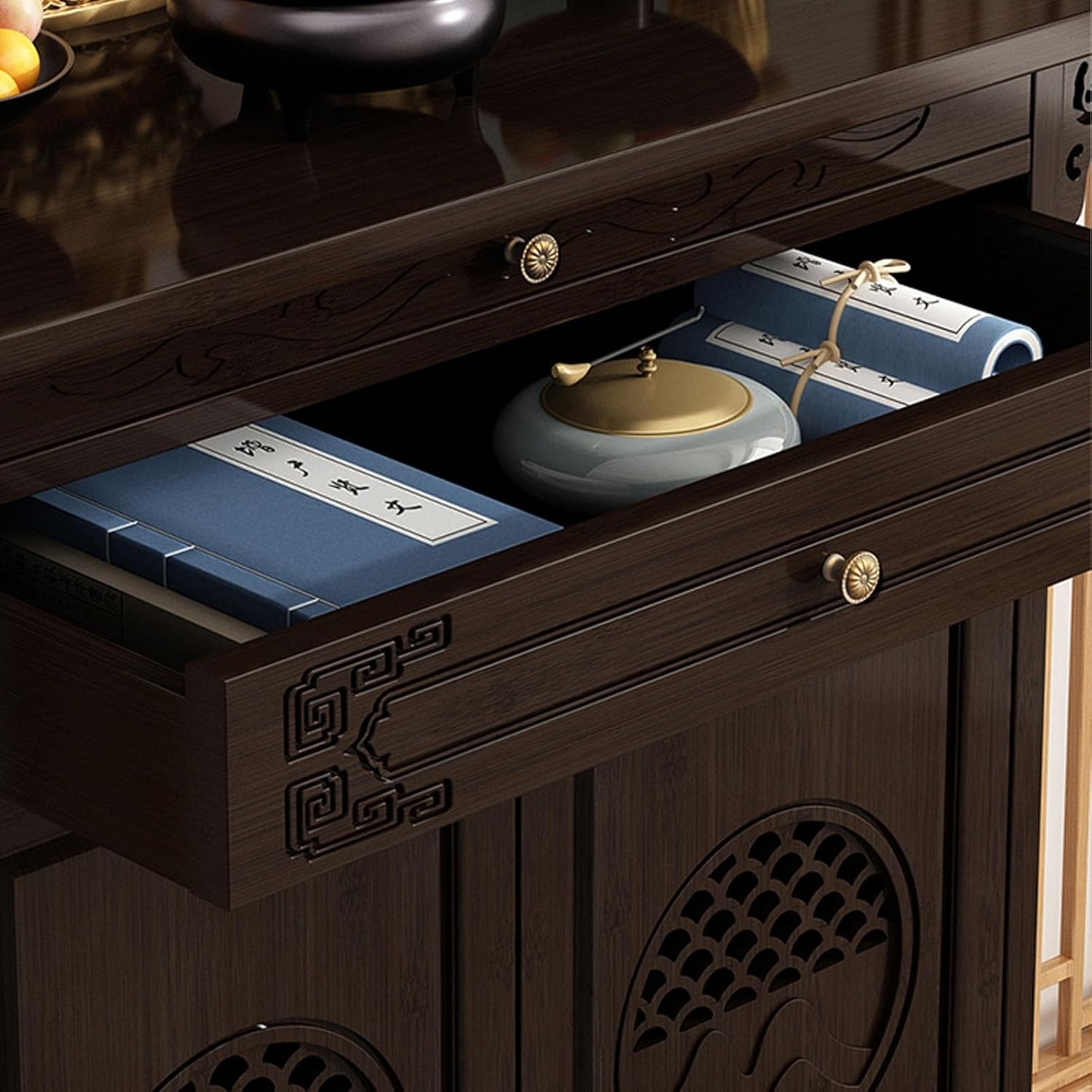 Bamboo Personal Altar Table, Personal Shrine Altar with Drawer, Chinese Cabinet Pedestal for Small Spaces, Puja Tables of Altar Cabinet for Temple Home(66cm/26in)