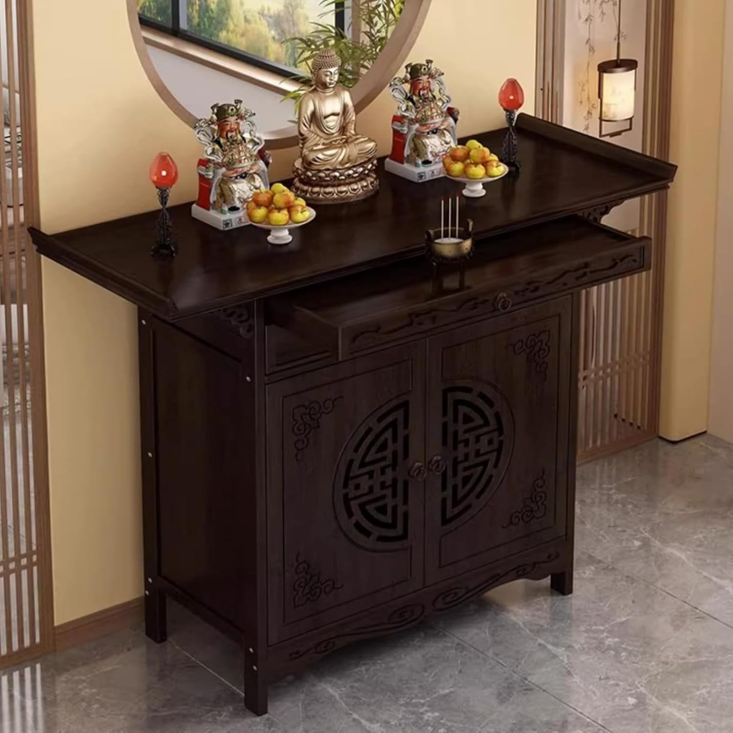 This personal altar table is a sacred space designed for believers and spiritual practitioners. Its stable and durable structure ensures long-term use. It is also equipped with built-in storage compartments to help you organize and store religious supplies, making the worship environment more neat and orderlyBuilt-in storage compartments: This meditation storage table has exclusive storage space for incense burners, candles, holy images, scriptures, instruments, talismans and other religious supplies to ensure a clean and orderly worship areaSpecification:Name: Personal Shrine Altar Table, Day of The Dead Altar Stand, Altar Cabinet, Meditation Prayer Table, Buddhist Altar, Chinese Buddha Niche Cabinet, Offering and Incense TableMaterial: Bamboo + Composite boardSize:66x40x100cm26x15.7x39.4in , 80x40x100cm/31.5x15.7x39.4in , 100x40x100cm/39.4x15.7x39.4in , 120x40x100cm47.2x15.7x39.4inPackage include:1pcs x Personal Shrine Altar TableNotes:1. Please check the size before buying. Due to manual measurement, an error of 0-3cm will occur. Hope for understanding.2. The product photos do not contain items other than the product.3. Please note that due to different monitors, there may be slight color difference, please understand.4. The above data is for reference only, the size is manually measured, each variable may be different, please refer to the actual product, thank you.
