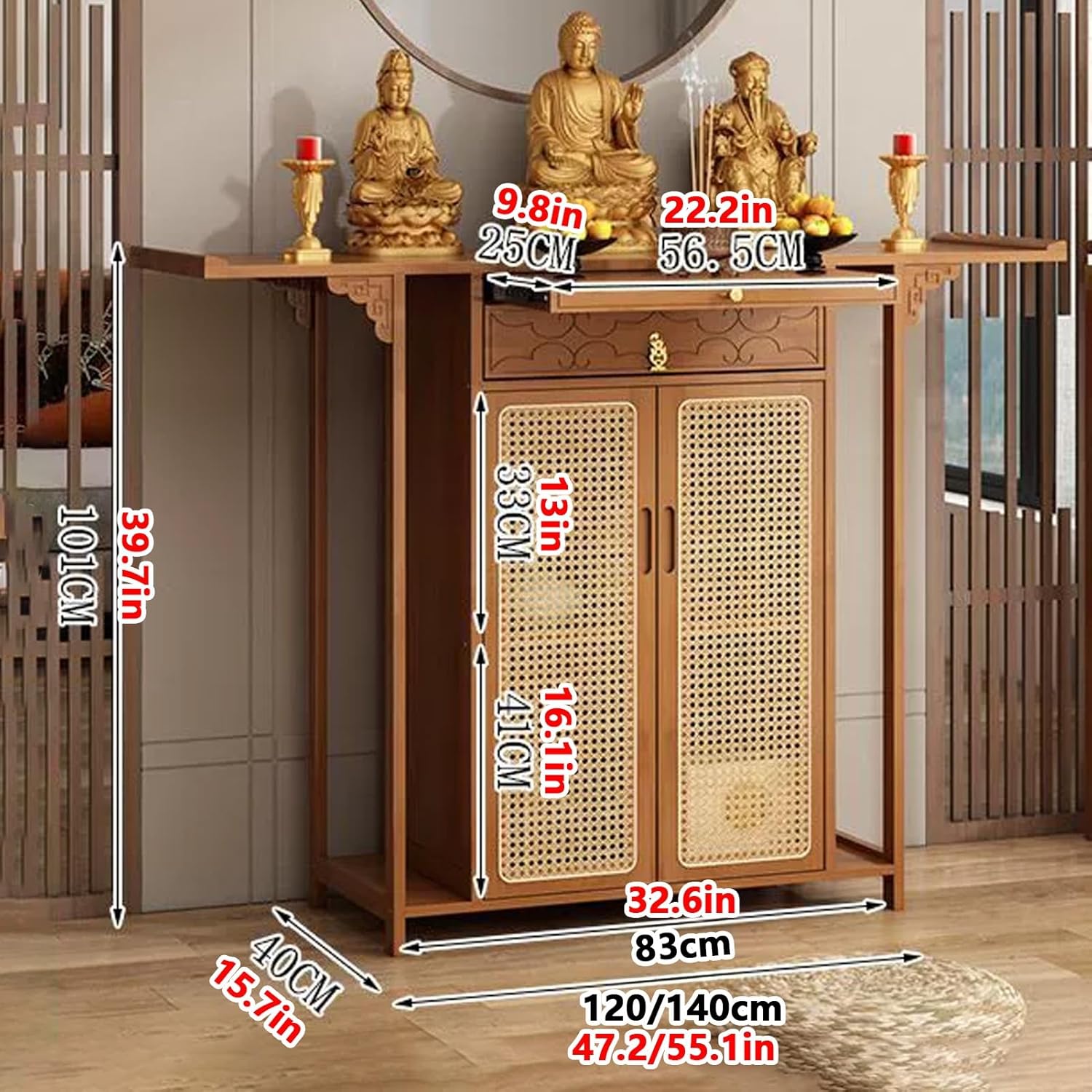 MultiFunctional YUGXTH Buddha Shelf is exquisite in workmanship, elegant and exquisite. It displays your Buddhist altar and enhances your home decoration, providing a solemn space for spiritual practice, tilted head is slightly raised to form a natural protective edge, which effectively prevents the offerings or ornaments from sliding from both sides, ensuring the stability and safety of the placement.Specification:Name: Personal shrine altar table, meditation storage table, day of the dead altar stand, buddha statue offering table, pet ashes house pooja table, home incense table buddhist shrine prayer stand riserMaterial: BambooColor: Black , Brown , NaturalLength: 120cm/47.2in, 140cm/55.1inWidth: 40cm/15.7inHeight: 101cm/39.7inPurpose: Can be used for prayer, incense burning, divination, offering, meditation, worship, ancestral hall, temple, worship, sacrificePackage Includes:1 * Personal Shrine Altar RackNote:1. Please check the size before buying. Due to manual measurement, an error of 0-3cm will occur. Hope for understanding2. The product photos do not contain items other than the product3. Please note that due to different monitors, there may be slight color difference, please understand