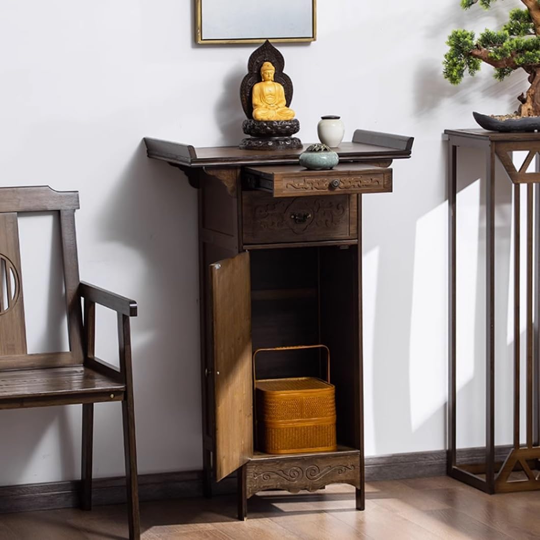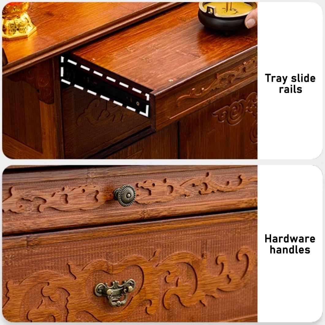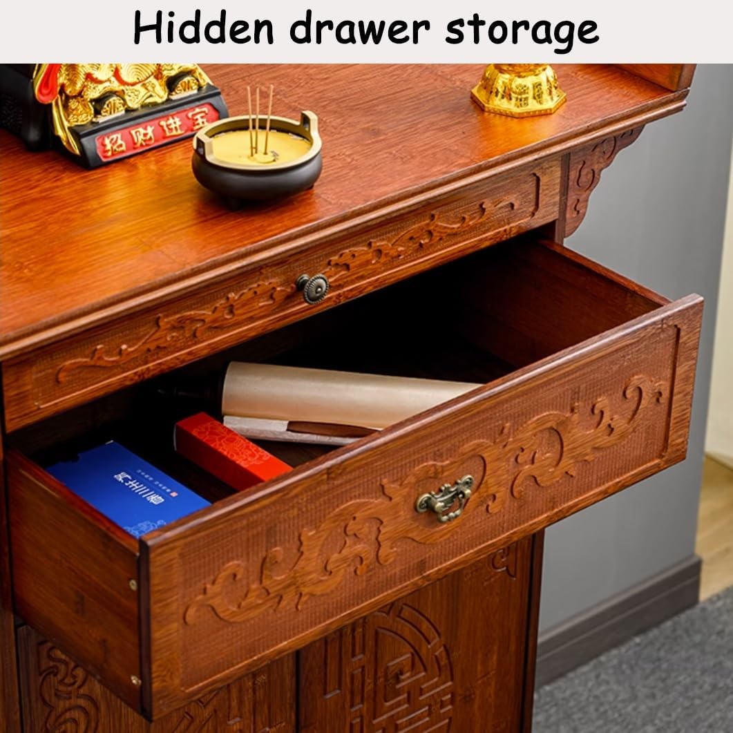 Welcome to YVYKFZD store:- Sacrificial altar has a pull-out shelf design, with enough space to store your tools, incense candles, incense burners and offerings. Any items used for specific rituals or spiritual activities- The sacrificial table has a stylish and practical design that is suitable for a variety of occasions, making it an elegant choice for enhancing decorative effects. Its multi-purpose function can meet different needs, and the quality of the carving is good, it is a good choice for displaying treasures and giving gifts to friends and relativesSpecification:● Name: Personal shrine altar table, meditation storage table, day of the dead altar stand, buddha statue offering table, pet ashes house pooja table, home incense table buddhist shrine prayer stand riser● Material: Bamboo● Color: Walnut, pear color● Size: 66x40x100cm/25.9"x15.7"x39.3", 80x40x100cm/31.4"x15.7"x39.3", 100x40x100cm/39.3"x15.7"x39.3"● Purpose: Can be used for prayer, incense burning, divination, offering, meditation, worship, ancestral hall, temple, worship, sacrificePackage Includes:1 * Personal Shrine Altar RackNote:1. Please check the size before buying. Due to manual measurement, an error of 0-3cm will occur. Hope for understanding2. The product photos do not contain items other than the product3. Please note that due to different monitors, there may be slight color difference, please understand