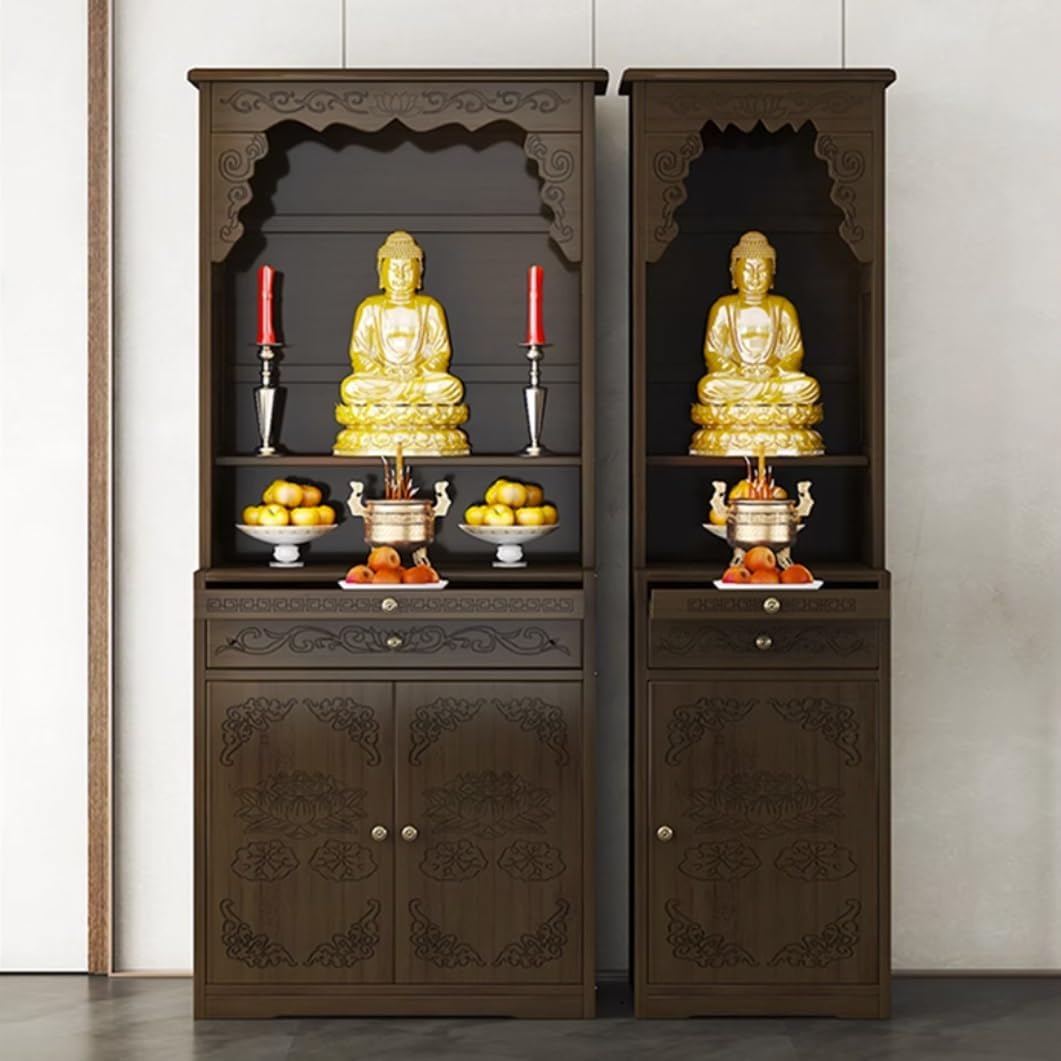 Welcome to YVYKFZD store:- The multifunctional puja table is exquisite in workmanship, elegant and exquisite. It displays your Buddhist altar and enhances your home decoration, providing a solemn space for spiritual practice- Whether you're looking to assert enlightenment in your life or just want to enjoy Buddhist artistry, the Buddhist-inspired buddhist altar could give your home a touch of peace. Note: This product is a Buddhist platform only, other accessories such as buddha statues are not includedSpecification:● Name: Personal shrine altar table, meditation storage table, day of the dead altar stand, buddha statue offering table, pet ashes house pooja table, home incense table buddhist shrine prayer stand riser● Material: Bamboo● Color: Walnut● Size: 42x39x175cm/16.5"x15.3"x68.8", 50x39x175cm/19.6"x15.3"x68.8", 70x39x175cm/27.5"x15.3"x68.8", 100x39x175cm/39.3"x15.3"x68.8"● Purpose: Can be used for prayer, incense burning, divination, offering, meditation, worship, ancestral hall, temple, worship, sacrificePackage Includes:1 * Personal Shrine Altar RackNote:1. Please check the size before buying. Due to manual measurement, an error of 0-3cm will occur. Hope for understanding2. The product photos do not contain items other than the product3. Please note that due to different monitors, there may be slight color difference, please understand