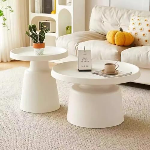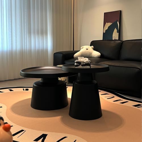 Introducing our Round Nesting Coffee Tables Set of 2, the perfect blend of modern design and functional elegance for your living spaces. Crafted with a mid-century wrought iron base, these tables offer a stylish centerpiece for your living room, bedroom, or office. The round design, featuring soft edges, not only enhances safety but also adds a contemporary touch to any decor. Say goodbye to clutter with our nesting tables that can be easily tucked away when not in use, providing you with the flexibility to adapt your space as needed. Their sleek construction ensures stability without wobbling, making them an ideal choice for daily use. The smooth surface is designed for easy cleaning, allowing you to maintain a chic look without the hassle. Available in a variety of colors including White+Black, Black+White, Black, White, Gray, and Yellow, these tables can seamlessly complement your existing furniture. Each set includes two tables sized at 70x70x41cm and 50x50x35cm, making them versatile enough for various settings, whether you're serving coffee, displaying decor, or enjoying a cozy evening with friends. Invest in both style and practicality with our Round Nesting Coffee Tables Set of 2—your perfect solution for enhancing any room while keeping it organized. Elevate your home decor and enjoy the benefits of smart design with this essential furniture piece.