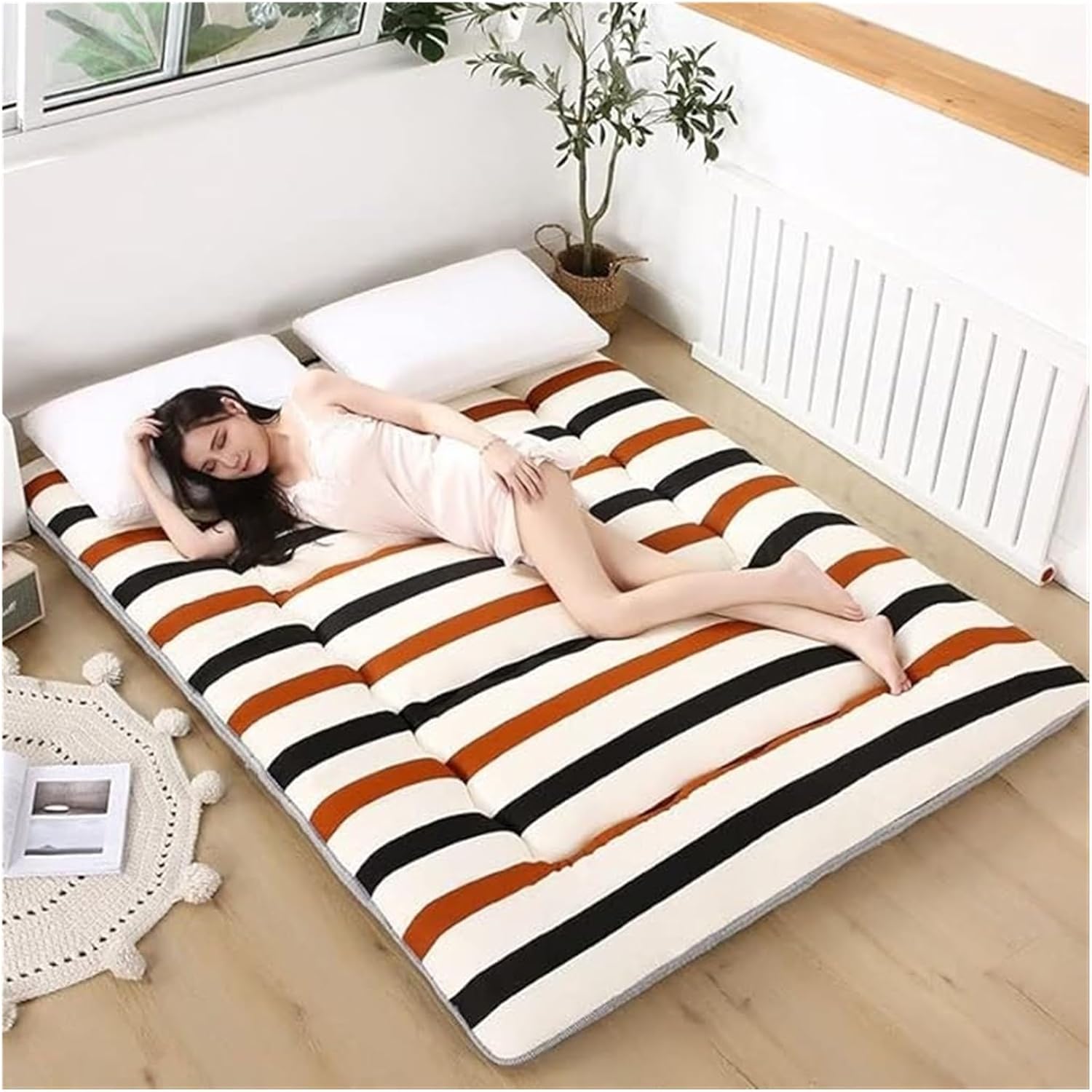 • WIDE VERSATILITY- It can be used as Bedroom Futon/Living Room Futon/Tatami Mat/Floor Mattress/Sleeping Floor mat/Tent Mat/Guest Mattress/Japanese Bed Mat, also can be kids play mat/floor pillow bed, also bring it with you in your car when going to anywhere, it is a good accompany for your family, just enjoy your homelife with Japanese Floor Mattress.