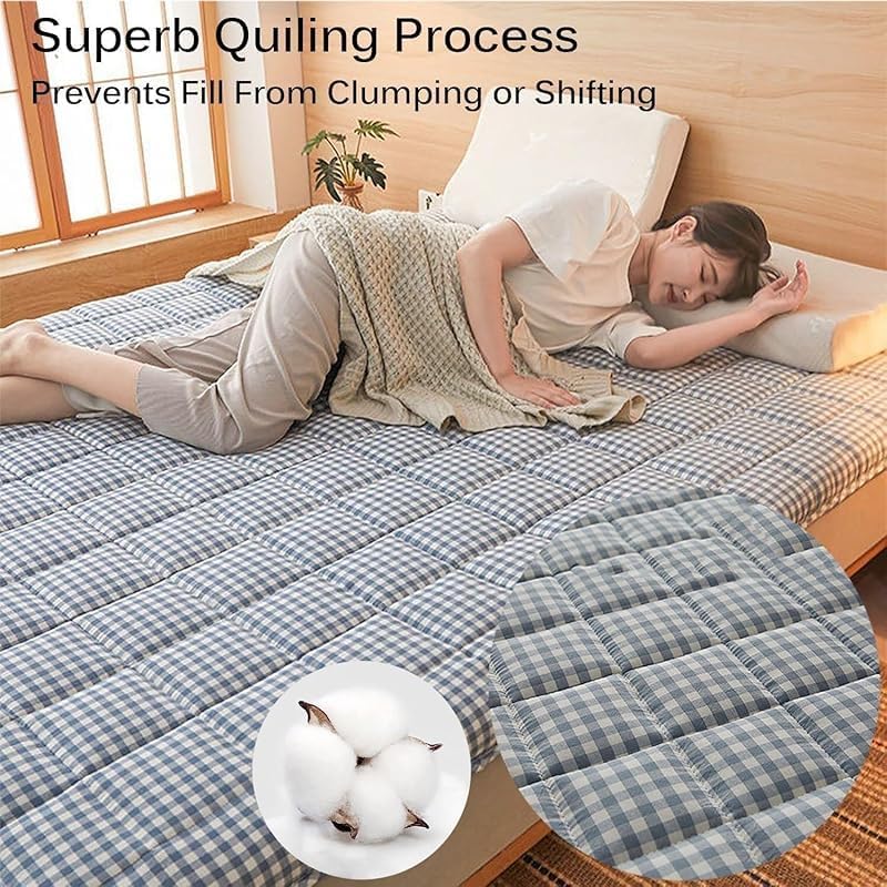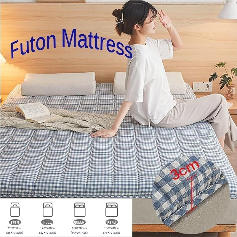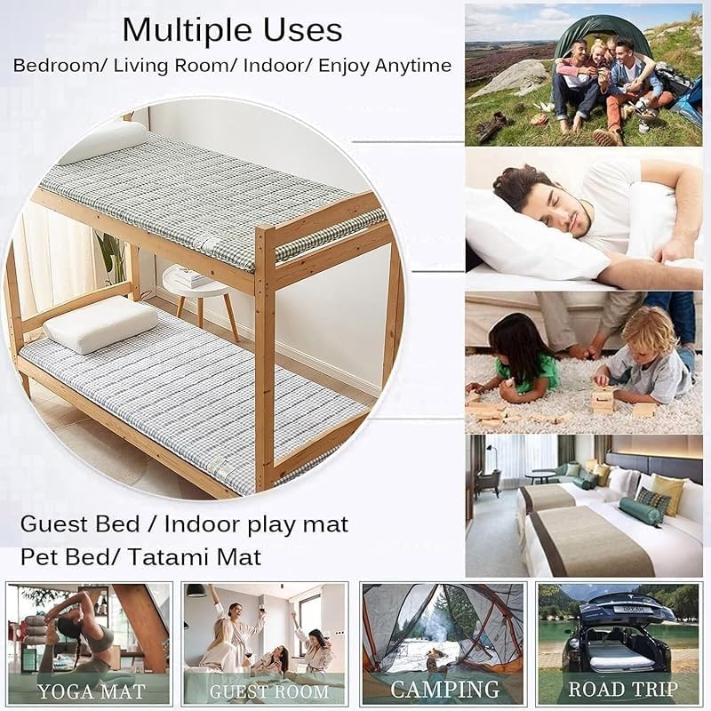 【High Comfort】Experience exceptional softness with our Japanese floor mattress, featuring high-density quilting and premium cotton filling for cloud-like comfort and better sleep. 【Portable & Lightweight】Easy to roll, carry, and store—perfect for camping, trips, picnics, or spontaneous naps anywhere you go. 【Multi-Scenario Use】Ideal as a bedroom futon, living room mat, guest bed, or outdoor mattress for camping and leisure.Comfort made versatile. 【Fluffy Cotton Fill】Filled with fluffy cotton that offers a plush, even surface without lumps, offering a cozy and gentle rest space. 【Quick Fluff Tip】Compressed for shipping.Allow 1-2 days to expand after opening.Sun exposure can help regain full loft faster.