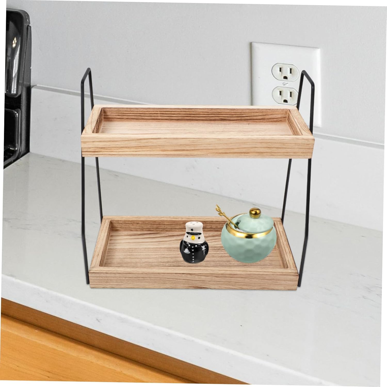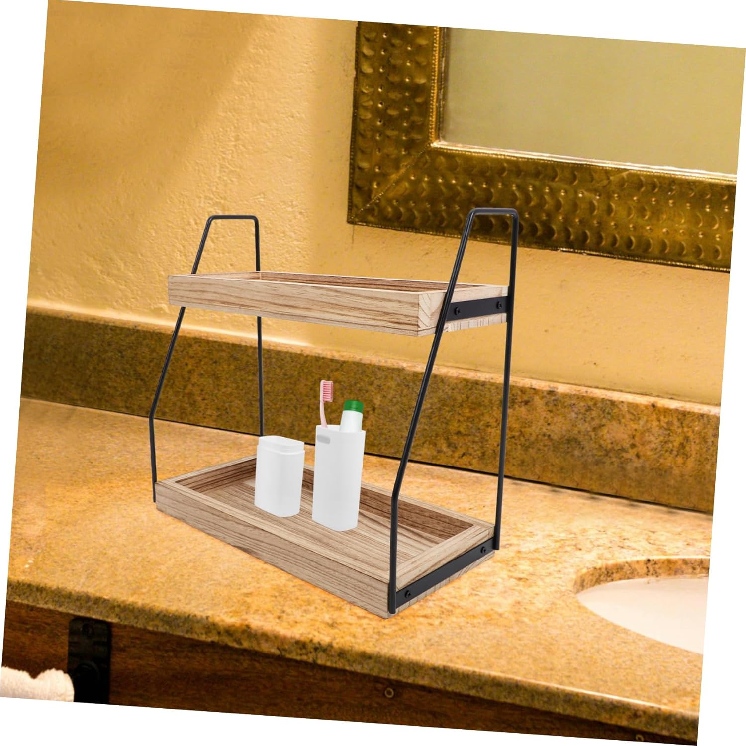 Package List 1 x storage rack Characteristics -Color:Multi kitchen counter storage -Size:35.50X33.00X17.00cm/13.95X12.97X6.68in coffee station organizer for countertop -Material:Wood, iron perfume storage -Product Info:Wooden storage rack - This storage rack can be used to store lots of things, bring much convenience to your life perfume shelf. - This display shelf is very simple to use, very practical to use, bring convenience to your life bathroom storage. - With 2 tier design, the storage rack has large capacity, and is space-saving and practical in your daily life. bathroom vanity organizer countertop - This storage rack is made of iron and wood materials, which is not easy to deform, has strong bearing capacity bathroom shelves organizer. - You can use this shelf to keep your bathroom and kitchen countertops in order, to make the house tidy. bathroom counterGoods Informationbathroom shelves organizer Are you looking for countertop organizer? This countertop organizer is perfect for you.small bakers rack The countertop organizer has strong load-bearing capacity and simple style, suitable for a variety of sundries.bathroom counter tray The design is simple and convenient, the details are perfect, practical to use