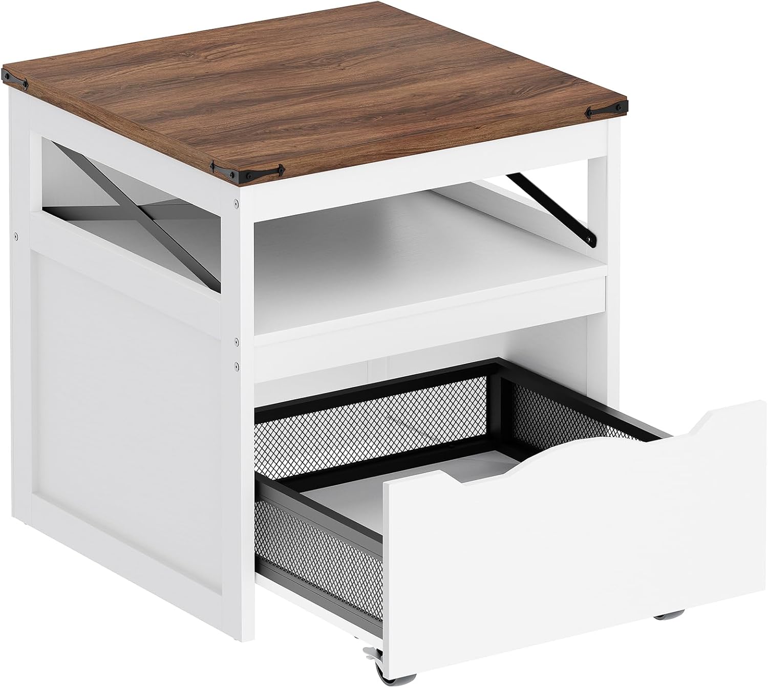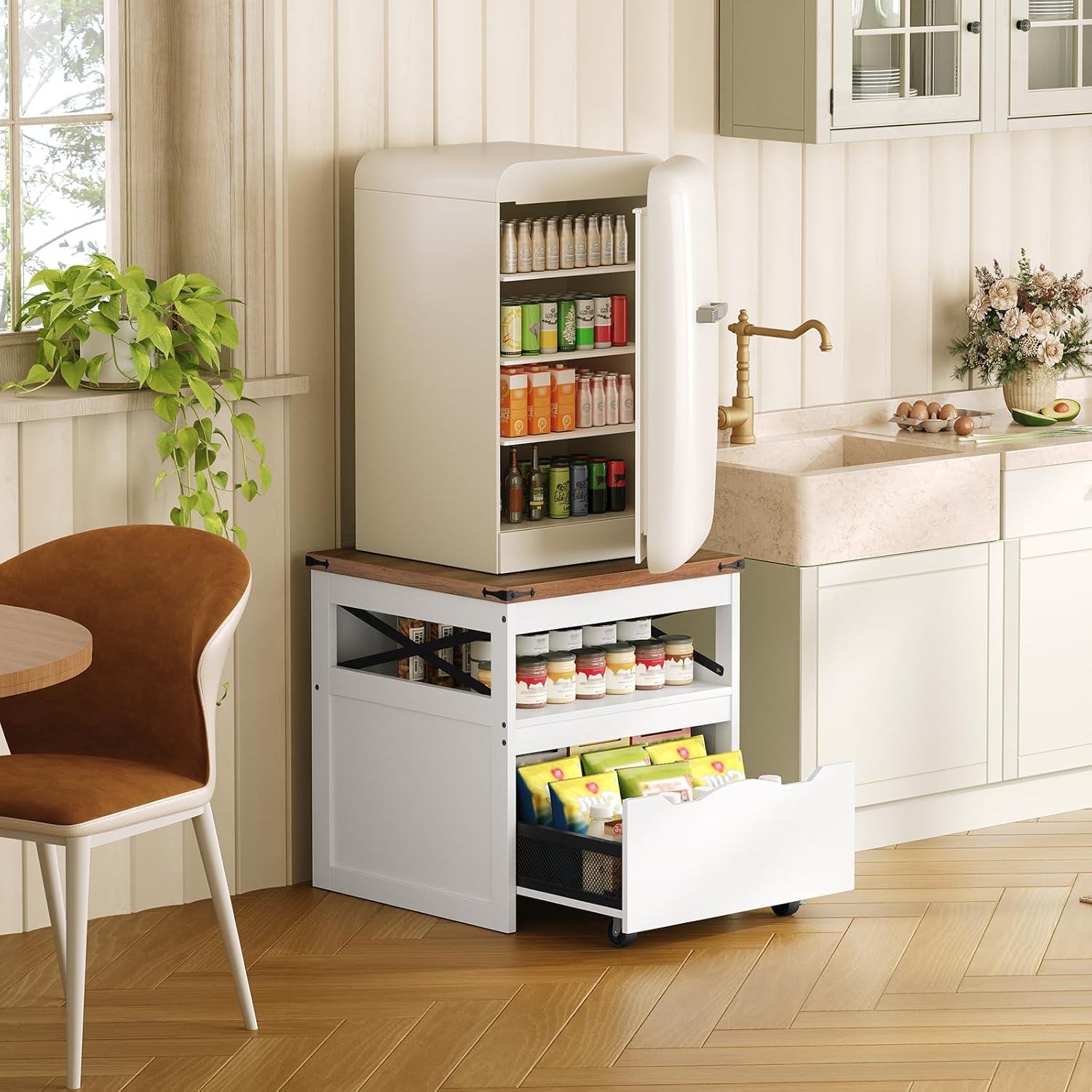 YATINEY Bakers Rack with Storage, 5-Tier Coffee Bar Station with Drawer, Kitchen Coffee Stand with Pod Drawer Holder, Mini Fridge Stand with Mobile Storage Basket, Mini Fridge Cabinet with Wheels and Open Shelf, Farmhouse 3-Tier Organizer Shelf for Kitchen, Bedroom, Dorm, Living Room KF60BRY1-HB50WH