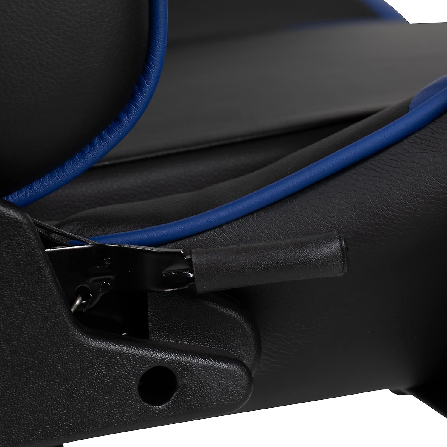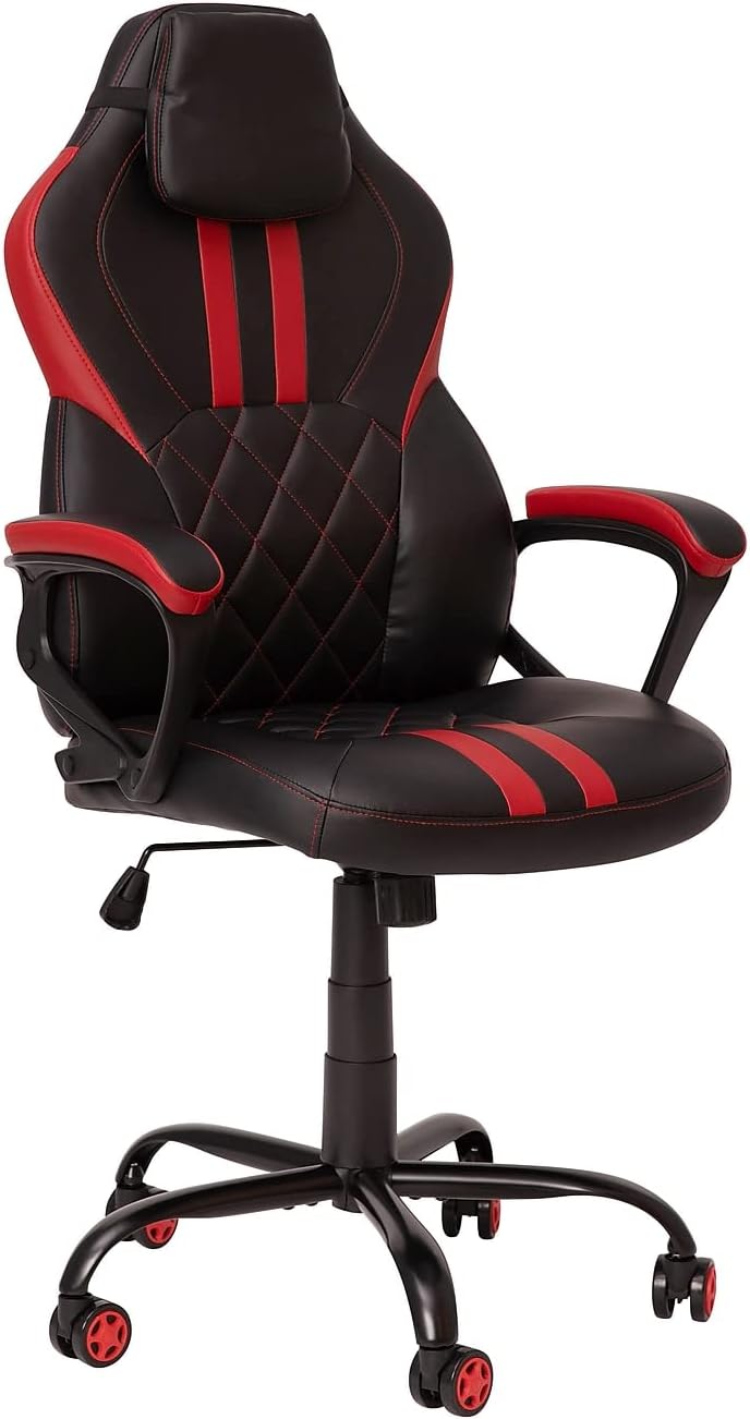 Have game day any time on your PC or with your console of choice when you own this blue racing gaming chair. Featuring a reclining back and covered in soft and durable LeatherSoft upholstery, this high back ergonomic office chair is essential. Support for your body is key when you will be sitting for extended periods and this PC office desk chair has you covered. Adjustable headrest and lumbar pillows can be repositioned where you need them or quickly unsnap them if you choose to remove them. Adjustable pivot arms relieve pressure from your neck and shoulders as well as the upper body. Gamers need ergonomic gaming chairs that'll keep them comfortable for many hours and this reclining office gaming chair with adjustable lumbar support will provide optimal support. Whether you need to lean back a little or a lot there's a separate lever to recline the back 87° ~ 145° while the lever underneath the seat controls the seat height and locks the chair in an upright position. You'll enjoy endless hours of comfortable game play in this ergonomic PC chair. If things get intense and you end up knocking over your drink or nachos, don't worry, This reclining chair cleans up easily with a solvent and water based cleaner such as foam. Complete your gaming experience with our red gaming ergonomic desk with cup holder and headphone hook or black gaming desk with cup holder, headphone hook, and monitor/smartphone stand.