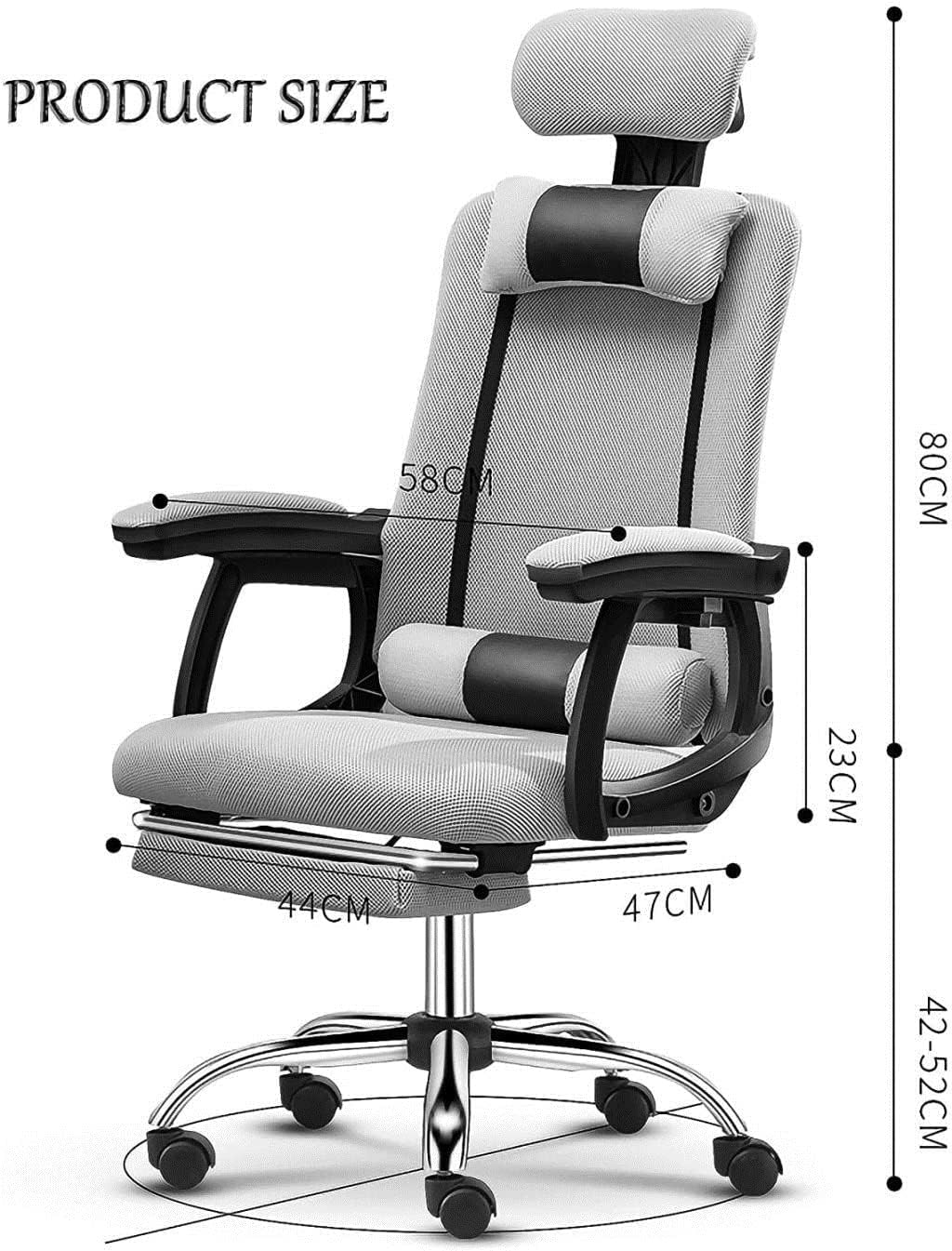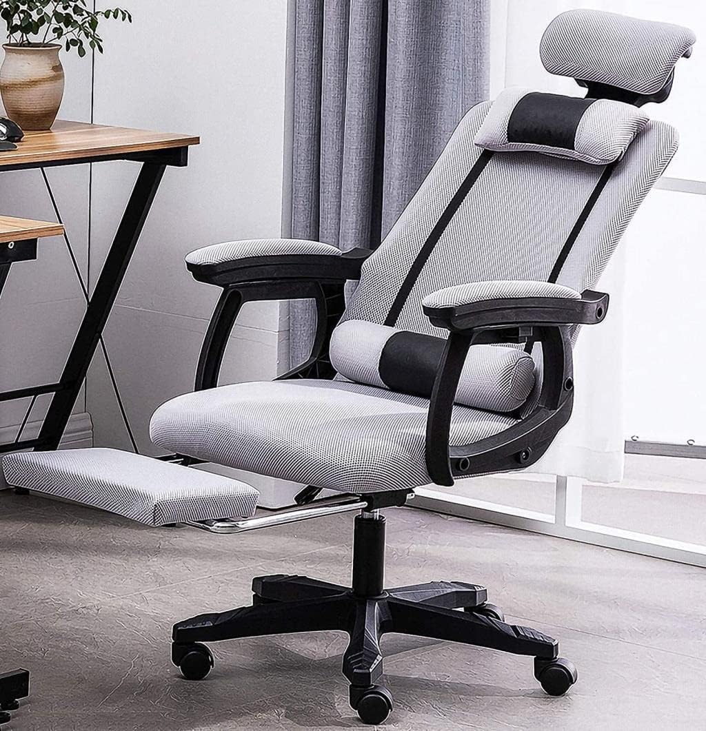 > GAMING CHAIR> Colour: Black,Grey> Product weight: 13 kg> Maximum load: 226 kg> Material: breathable netting + nylon high strength frame + High density foam cushion> FEATURES>1. supports better ergonomics.>2. 360 rotatable. Comes with silent wheels to move around.>3. Seat height adjustable. >4. with headrest to stop neck fatigue>5. reclining with footrest.>6. five-jaw makes it has better weight-bearing capacity.>7. this gaming chair also performs better in other situations.> PACKAGE INCLUDES - Installation instructions x 1, - Gaming chair x 1, - Mounting accessories x 1>Please Note: You need to assemble yourself>Reminder: >1. Due to different shooting scenes or computer monitor lighting, the actual product color may be slightly different from the picture color, please understand.>2. As the product size is manually measured, please allow an error of 1-3 cm.>3. We only sell chairs, not other decorations, please understand.>4. Before buying, you can contact us in time if you have any questions, and we will serve you as soon as possible.{/p}