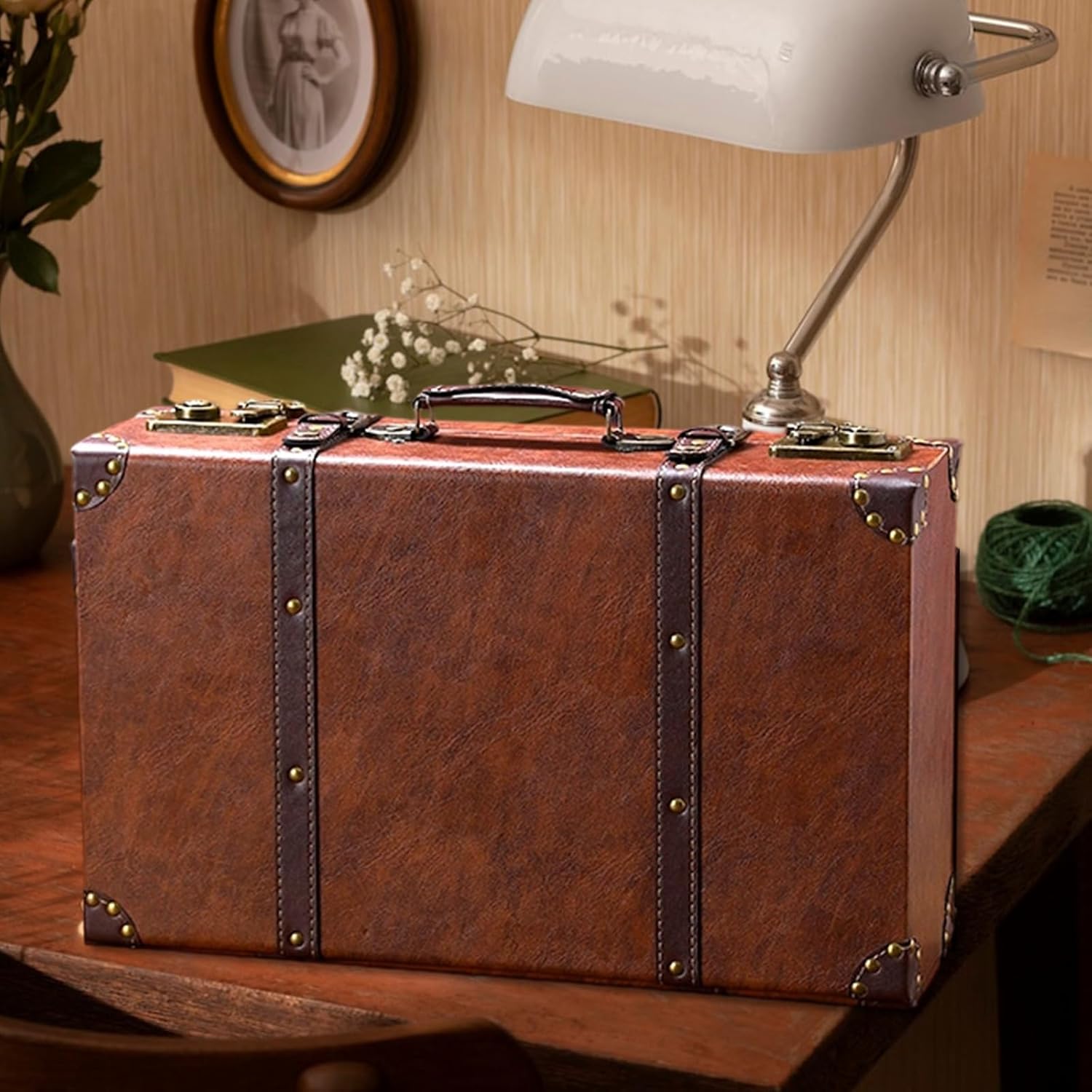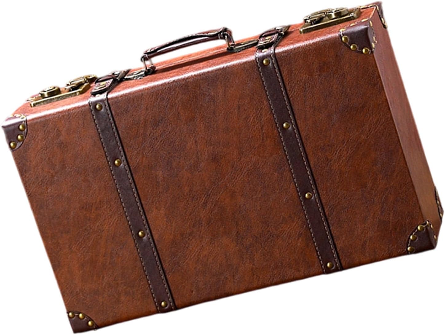 Large Capacity Wooden Suitcase with Leather Handles Vintage Styles Storage Chest for Film Productions Wedding DisplayFeatures:Embarks on a journey through time with our vintage styles leather suitcase, crafted from wood and leather materials and exuding timelesses elegances.Featuring sturdy metal rivets, this suitcase combines industrial charm with a spacious interior, perfect for storing jewelry or stylishly organizing your belongings.Ideal for vintage enthusiasts, photographers, and collectors who appreciate and styles in their accessories.Perfect for travel adventures, home storage photography props, display showcases, and unique decoration.This suitcase seamlessly blends functionality with nostalgias, adding a touch of sophistication to any setting.Specifications:Component: Wood + LeatherSize:Approx. 48x29x14cm/18.9x11.42x5.51inchColor: 3 OptionalWeight:2700gPackage Includes:1pc Decorative SuitcaseNote:1.Please allow 1-2cm errors due to manual measurement, make sure that you donot mind before you order. 2.Due to the differences between different monitors, the picture may not reflect the actual color about the item.