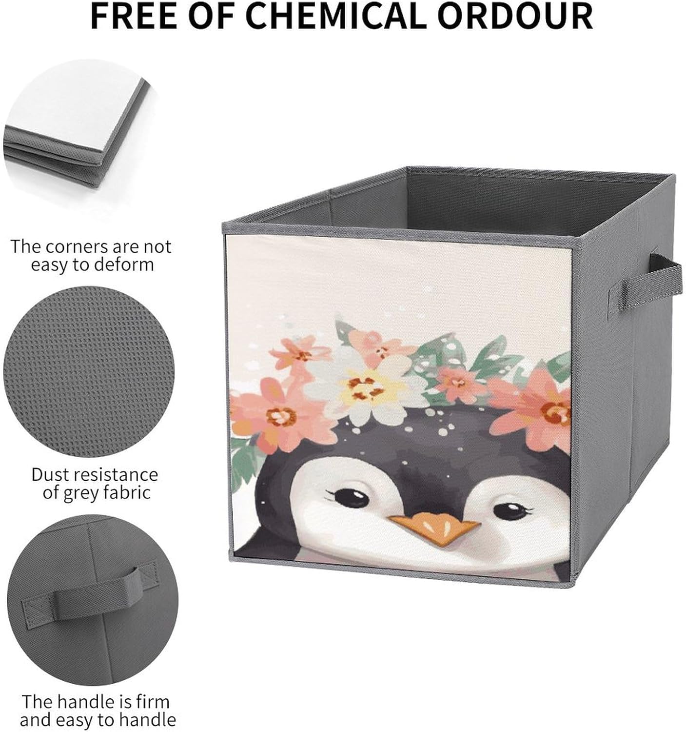 Penguin Wearing Flowers printed Fabric Storage Bin Provides An Effective Solution For Storage And Organization. Can Maintain The Orderliness Of Household Items. Large Storage Bags Are Perfect For Storing Clothes, Baby Products, Towels, Toys, Pet Supplies, And More. Foldable Cubes Storage Bag Is Made With A Unique Style, Exquisite Details, And Craftsmanship. Clothes Organizer Container Is Perfect As A Holiday Gift For Friends And Family
