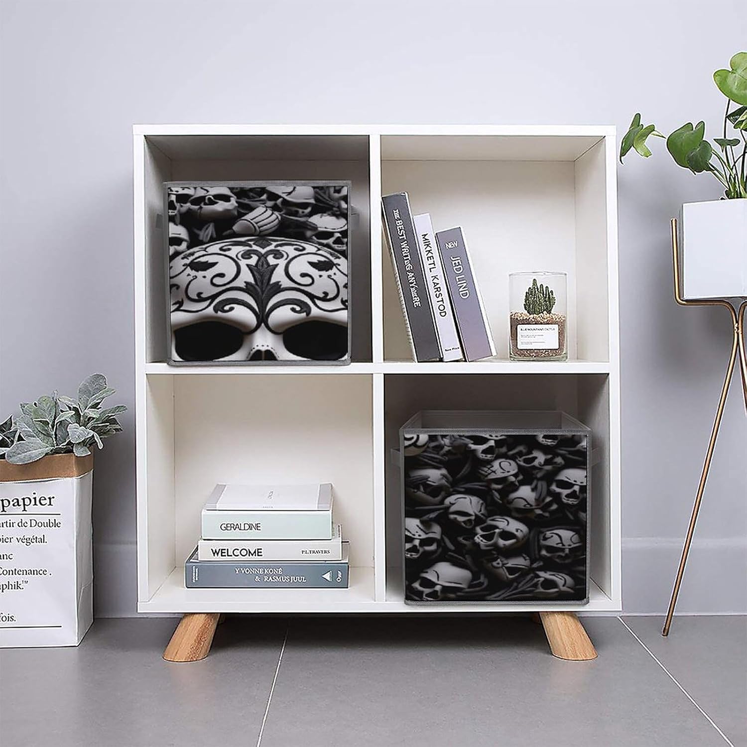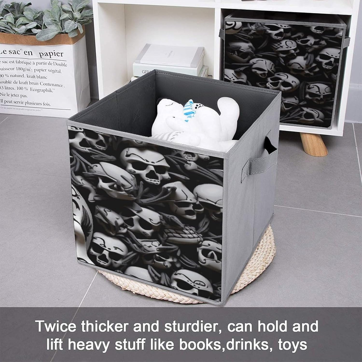 Black And White Skulls printed Fabric Storage Bin Provides An Effective Solution For Storage And Organization. Can Maintain The Orderliness Of Household Items. Large Storage Bags Are Perfect For Storing Clothes, Baby Products, Towels, Toys, Pet Supplies, And More. Foldable Cubes Storage Bag Is Made With A Unique Style, Exquisite Details, And Craftsmanship. Clothes Organizer Container Is Perfect As A Holiday Gift For Friends And Family