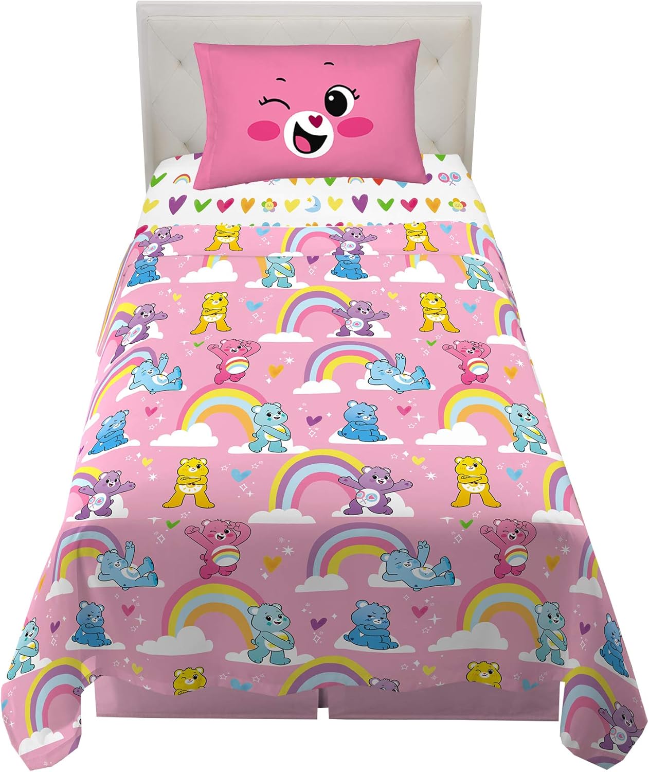 Help her drift off to sleep with dreams of becoming a rock star in this high-quality sheet set featuring colorful LOL Surprise doll imagery. Adorable rock-and-roll style combines with characters from her favorite collectible toys to create fun and inviting bedroom décor. This complete sheet set includes a high-quality fitted sheet, flat sheet, and pillowcase for a coordinated LOL Surprise theme. It is crafted from soft microfiber with a fun leopard print design on the fitted sheet, a bold two-tone striped pattern with character imagery on the flat sheet, and rocking character artwork on the pillowcase. LOL Surprise dolls from have taken the toy industry by storm, and now the fun continues with adorable décor items that bring the excitement home. Help your future star steal the show with the bright colors and fun character artwork of this stylish sheet set. Set is available in a twin size 3 piece bedding set or a full size 4 piece bedding set.