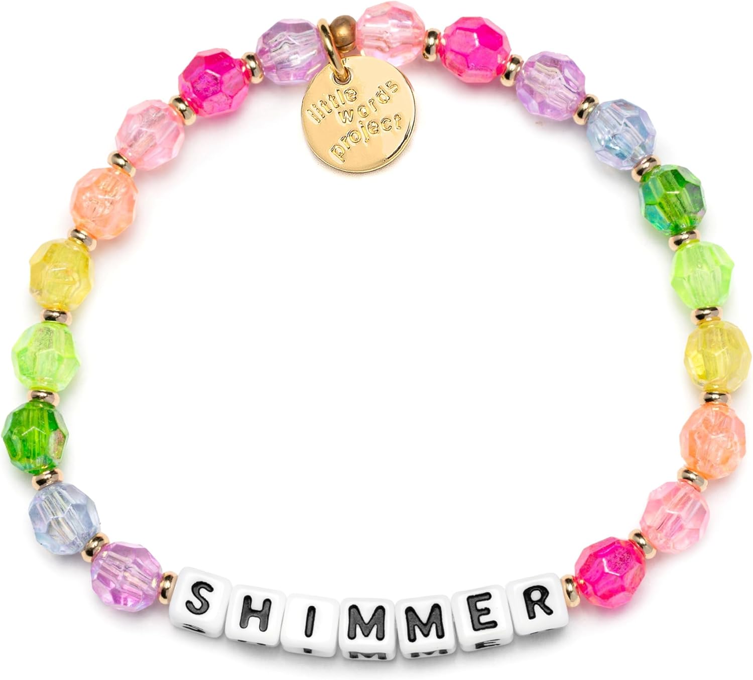 The Little Words Project Be Happy bracelet reminds you to stay positive and spread joy! Handcrafted with love, this Little Words bracelet features vibrant beads, silicone discs, plated brass hardware, and a strong, elastic stretch band for a flexible, comfy fit. Each bracelet is available in multiple sizes and includes a special storage pouch. Handle the beaded bracelet with care and keep it dry. Built on kindness, Little Words Project bracelets are made to be worn, loved and shared – bringing self-love and positivity to each person they touch. Wear your Little Word, then pass it to someone who needs it more. Explore our charm, beaded and custom bracelets and enjoy an uplifting accessory.