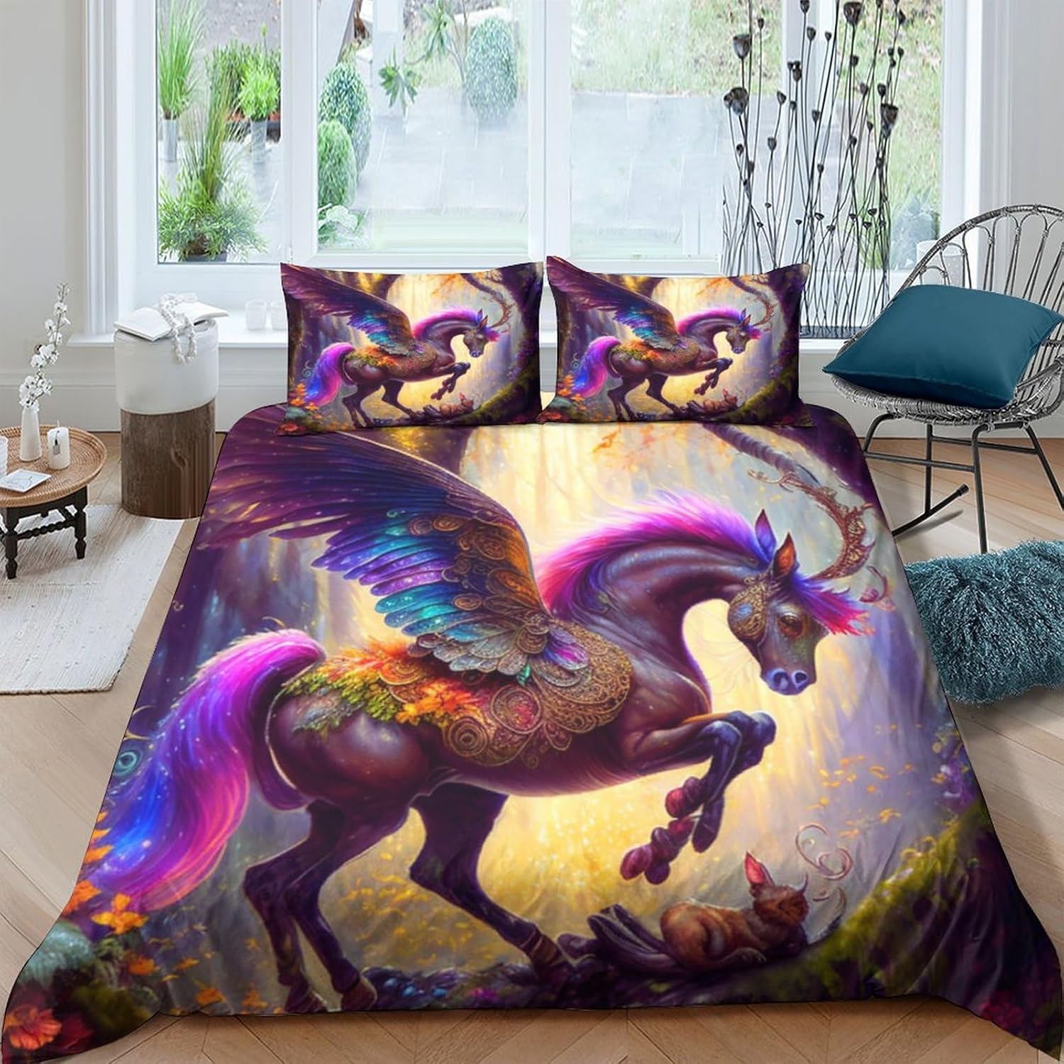 ⭐Sizes Choice:Twin size comforter set: 1 Twin Comforter 173 x 218cm(68x86inches) and 2 Pillowcase 50 x 75cm(20x30inches);Full size comforter set: 1 Full Comforter 200x 228cm(79x90inches) and 2 Pillowcases 50 x 75cm(20x30inches)Queen size comforter set: 1 Queen Comforter 228x 228cm(90x90inches) and 2 Pillowcases 50 x 75cm(20x30inches):King size comforter set:1 King Comforter ⭐Soft Material:Brushed Microfiber Material Shell with 100% polyester filling.Medium thickness for any season. ⭐Printing And Dyeing: Excellent 3D printed highlights vivid colors. Great choice for your bedroom decoration. New lifestyle for home decor.