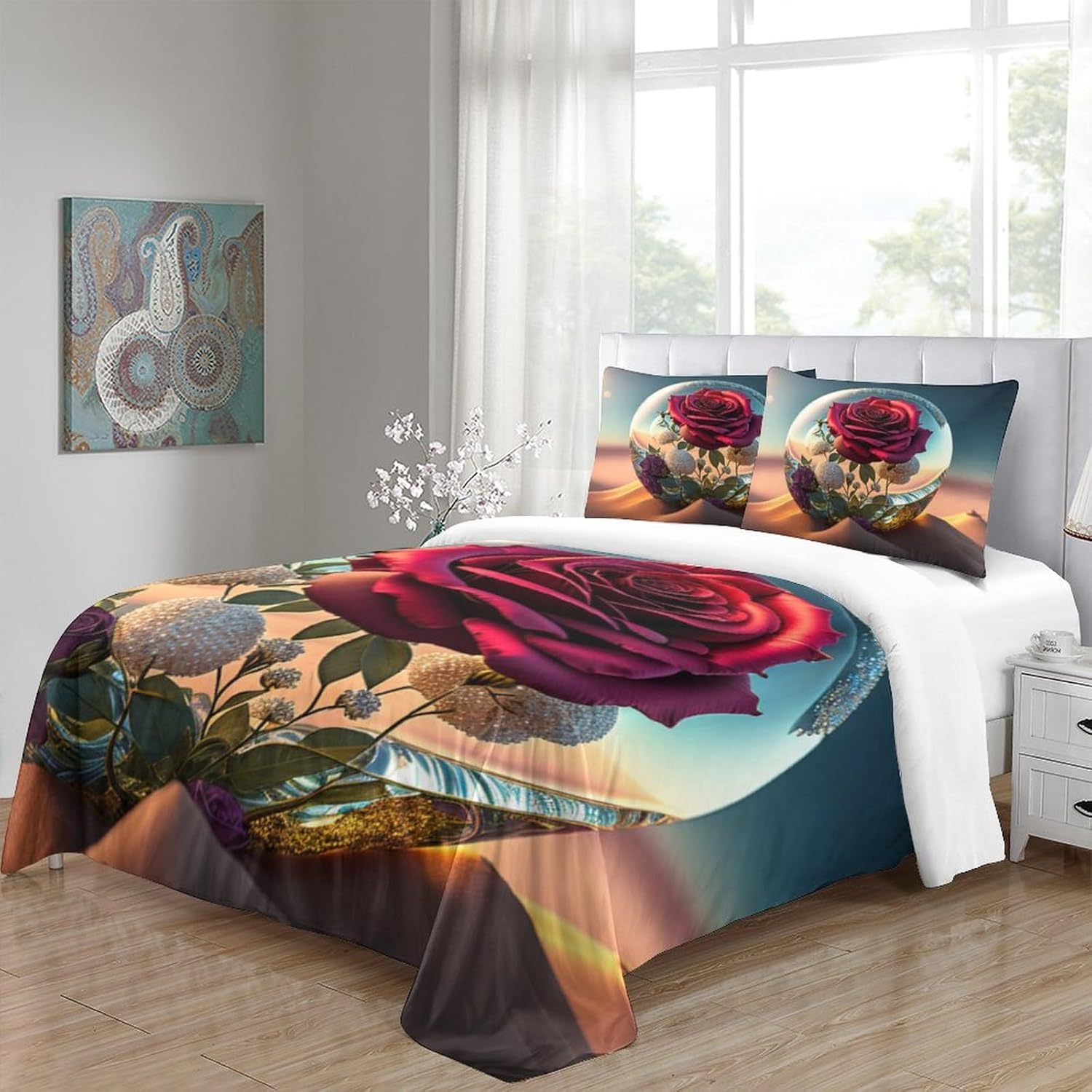 ⭐Sizes Choice:Twin size comforter set: 1 Twin Comforter 173 x 218cm(68x86inches) and 2 Pillowcase 50 x 75cm(20x30inches);Full size comforter set: 1 Full Comforter 200x 228cm(79x90inches) and 2 Pillowcases 50 x 75cm(20x30inches)Queen size comforter set: 1 Queen Comforter 228x 228cm(90x90inches) and 2 Pillowcases 50 x 75cm(20x30inches):King size comforter set:1 King Comforter ⭐Soft Material:Brushed Microfiber Material Shell with 100% polyester filling.Medium thickness for any season. ⭐Printing And Dyeing: Excellent 3D printed highlights vivid colors. Great choice for your bedroom decoration. New lifestyle for home decor.