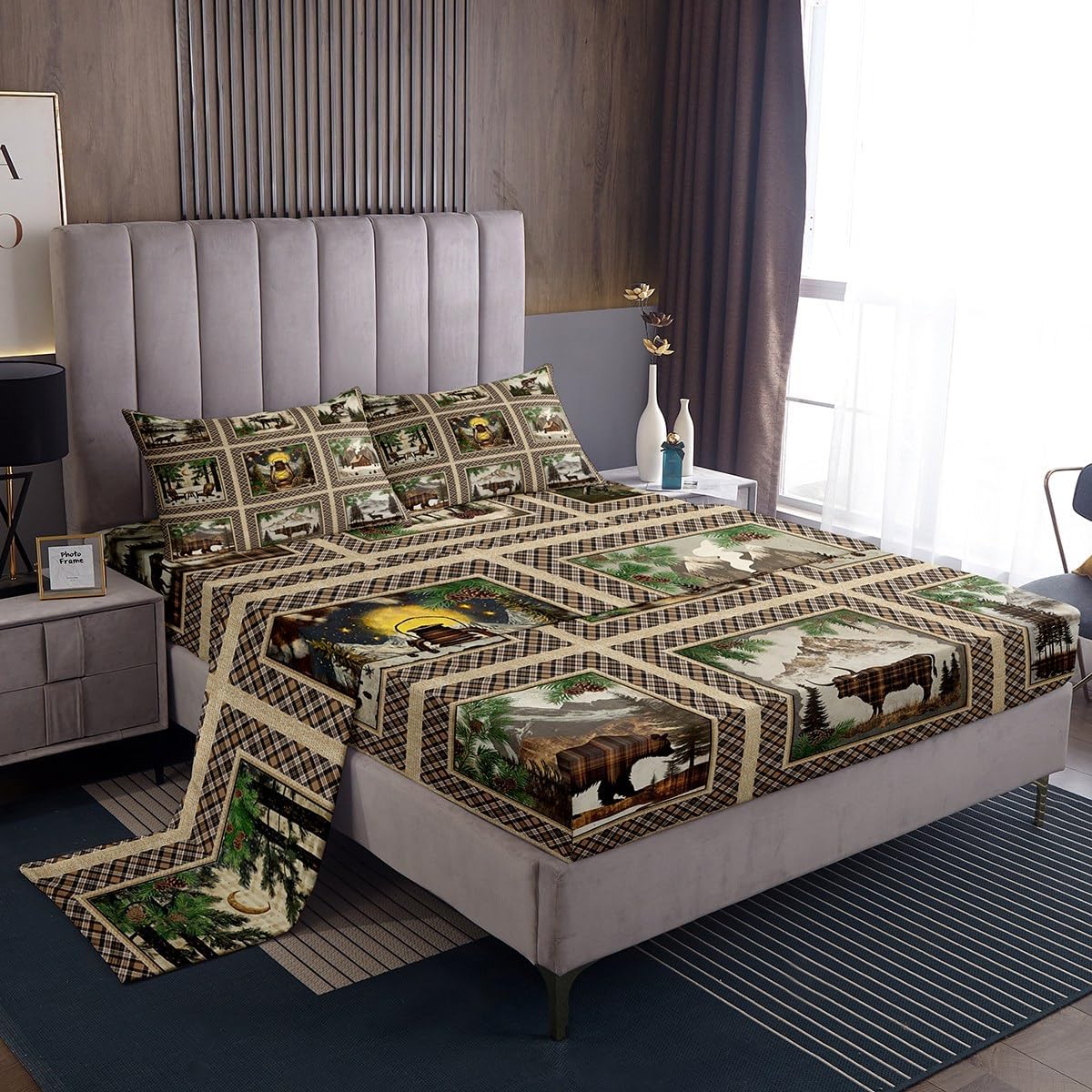 Our bed sheet is made of polyester fabric, lightweight and soft; stylish design is very suitable as room decoration for boys and girls; keep warm in winter and cool in summer; create a comfortable sleeping environment to make you fall asleep all night Range of size 1 twin fitted sheet 39 inch x 75 inch x 16 inch and 1 twin flat sheet 66 inch x 96 inch and 1 standard pillowcase 20 inch x 30 inch 1 full fitted sheet 54 inch x 75 inch x 16 inch and 1 full flat sheet 81 inch x 96 inch and 2 standard pillowcase 20 inch x 30 inch 1 queen fitted sheet 60 inch x 80 inch x 16 inch and 1 queen flat sheet 90 inch x 102 inch and 2 standard pillowcase 20 inch x 30 inch 1 king fitted sheet 78 inch x 80 inch x 16 inch and 1 king flat sheet 90 inch x 106 inch and 2 standard pillowcase 20 inch x 36 inch