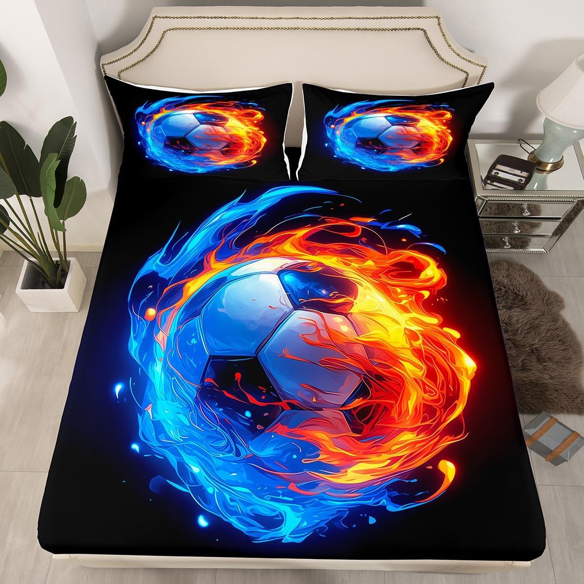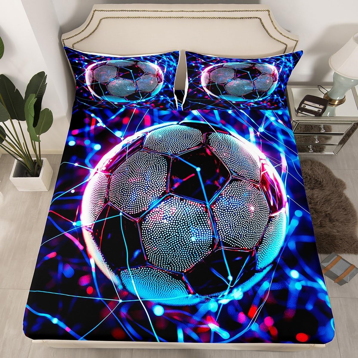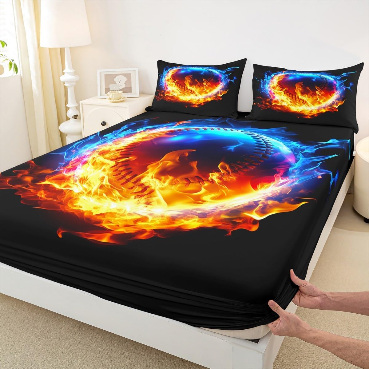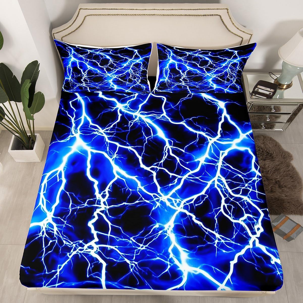 Our bedroom decor fitted sheet look with the vivid stylish and elegant print bedding set Specifications Twin size: 1 fitted sheet 39 Inch x 75 Inch x 16 inch and 1 pillowcase 20 Inch x 30 inch Full size:1 fitted sheet 54 Inch x 75 Inch x 16 inch and 2 pillowcases 20 Inch x 30 inch Queen size:1 fitted sheet 60 Inch x 80 inch x 16 inch and 2 pillowcases 20 Inch x 30 inch Flat sheet is not included; deep pocket fitted sheet with elastic all around Materials: microfiber fabric, soft and feel like cotton for a good night sleep Fashion forward inspired 3d print patterned technique, create a cool sleep environment for your kids, making your bedroom full of imagination Nice choice for birthday, boys and girls will be so happy with this Care instructions Dry clean preferred; machine washable, use cold water on gentle cycle, tumble dry low