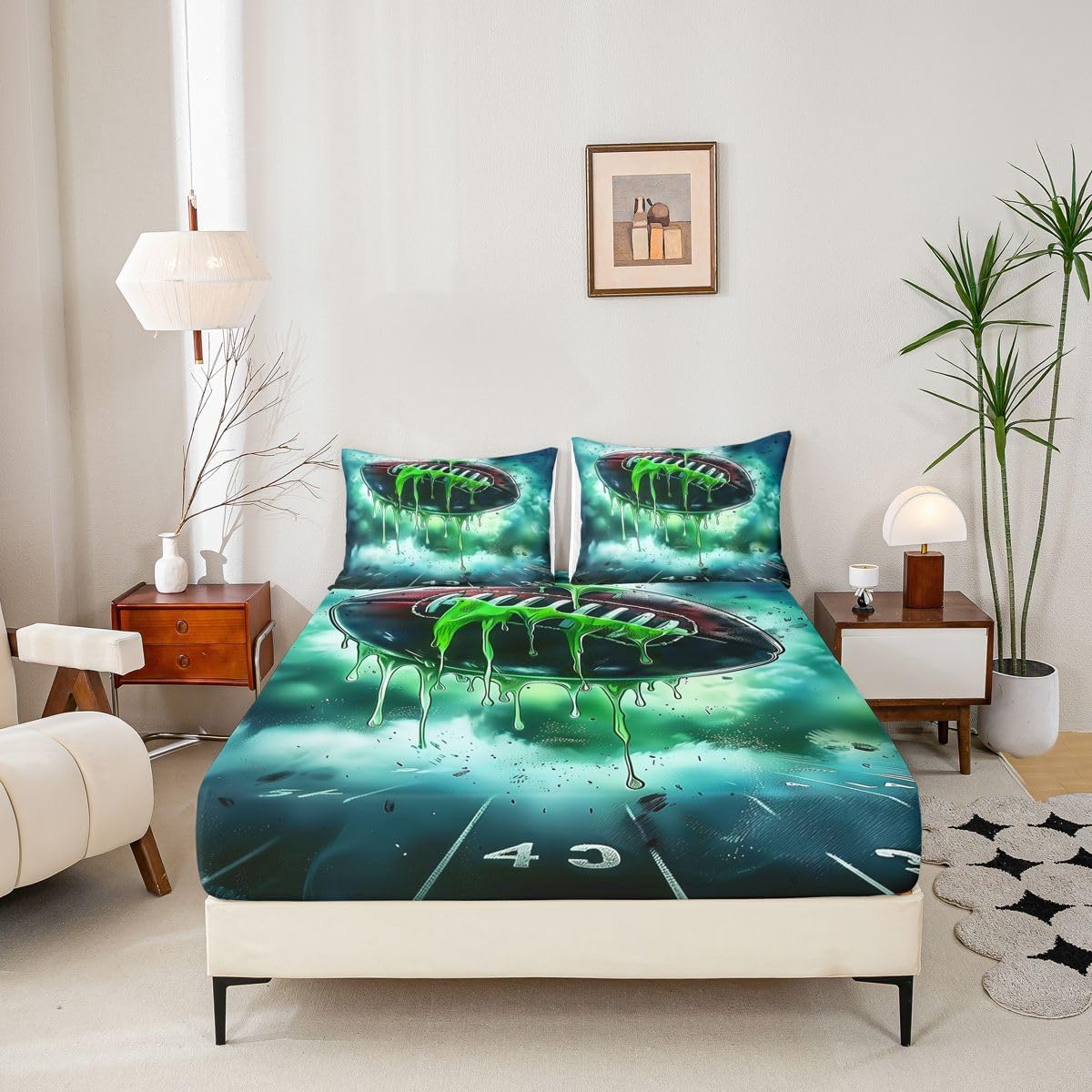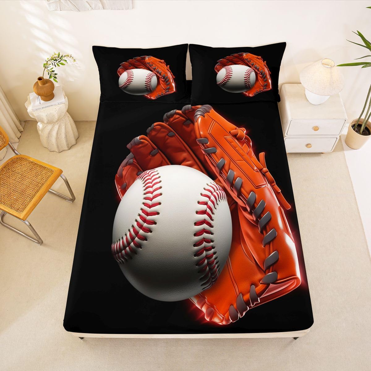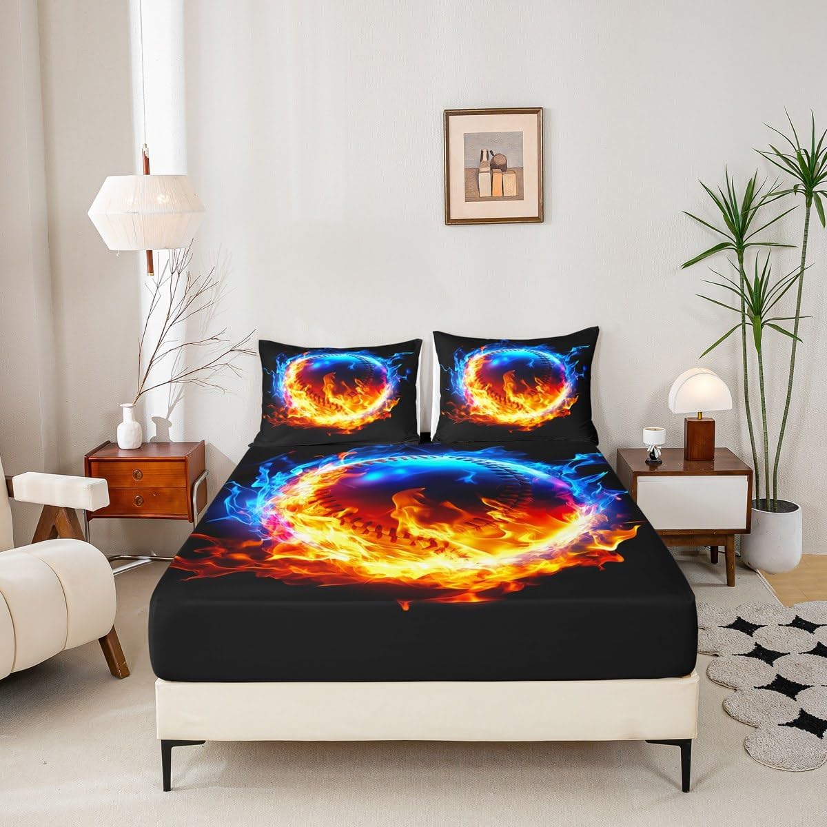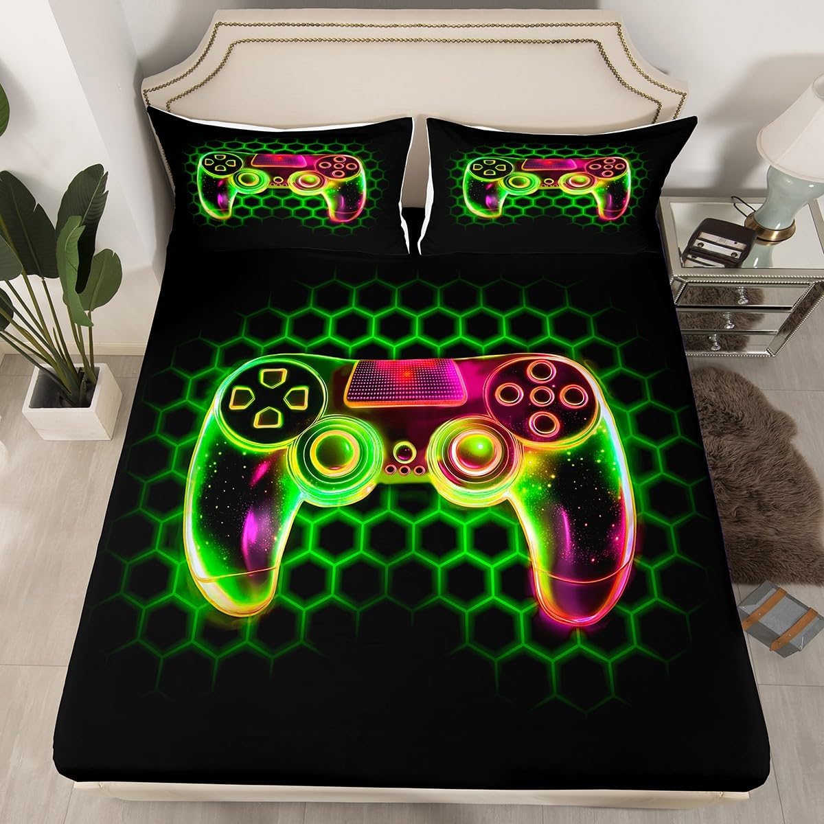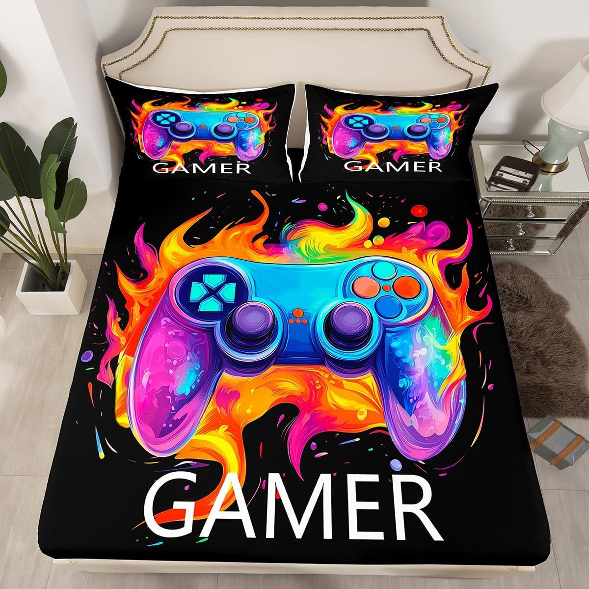 Our bedroom decor fitted sheet look with the vivid stylish and elegant print bedding set Specifications Twin size: 1 fitted sheet 39 Inch x 75 Inch x 16 inch and 1 pillowcase 20 Inch x 30 inch Full size:1 fitted sheet 54 Inch x 75 Inch x 16 inch and 2 pillowcases 20 Inch x 30 inch Queen size:1 fitted sheet 60 Inch x 80 inch x 16 inch and 2 pillowcases 20 Inch x 30 inch Flat sheet is not included; deep pocket fitted sheet with elastic all around Materials: microfiber fabric, soft and feel like cotton for a good night sleep Fashion forward inspired 3d print patterned technique, create a cool sleep environment for your kids, making your bedroom full of imagination Nice choice for birthday, boys and girls will be so happy with this Care instructions Dry clean preferred; machine washable, use cold water on gentle cycle, tumble dry low