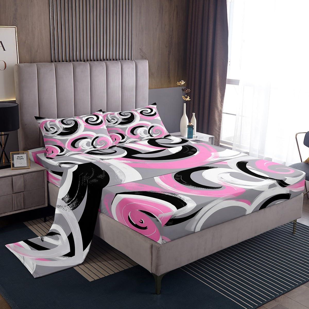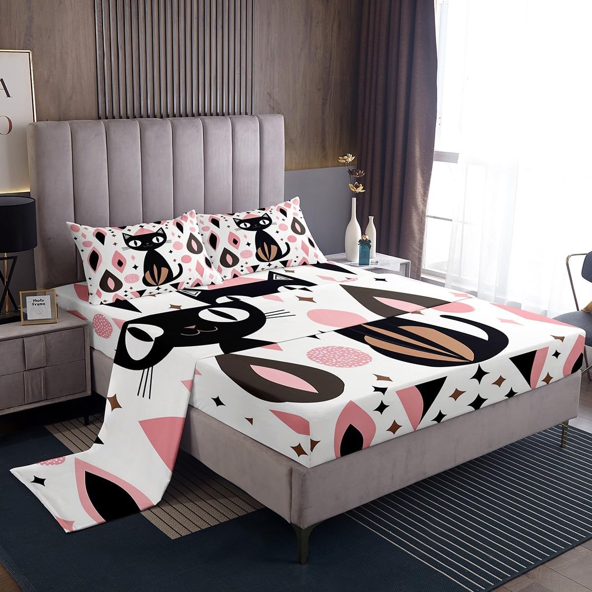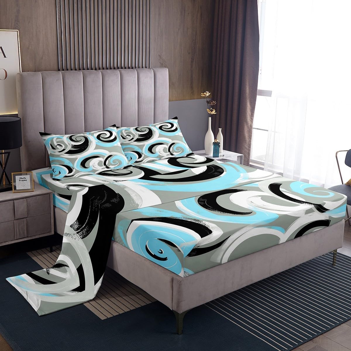 Our bed sheet is made of polyester fabric, lightweight and soft; stylish design is very suitable as room decoration for boys and girls; keep warm in winter and cool in summer; create a comfortable sleeping environment to make you fall asleep all night Range of size 1 twin fitted sheet 39 inch x 75 inch x 16 inch and 1 twin flat sheet 66 inch x 96 inch and 1 standard pillowcase 20 inch x 30 inch 1 full fitted sheet 54 inch x 75 inch x 16 inch and 1 full flat sheet 81 inch x 96 inch and 2 standard pillowcase 20 inch x 30 inch 1 queen fitted sheet 60 inch x 80 inch x 16 inch and 1 queen flat sheet 90 inch x 102 inch and 2 standard pillowcase 20 inch x 30 inch 1 king fitted sheet 78 inch x 80 inch x 16 inch and 1 king flat sheet 90 inch x 106 inch and 2 standard pillowcase 20 inch x 36 inch