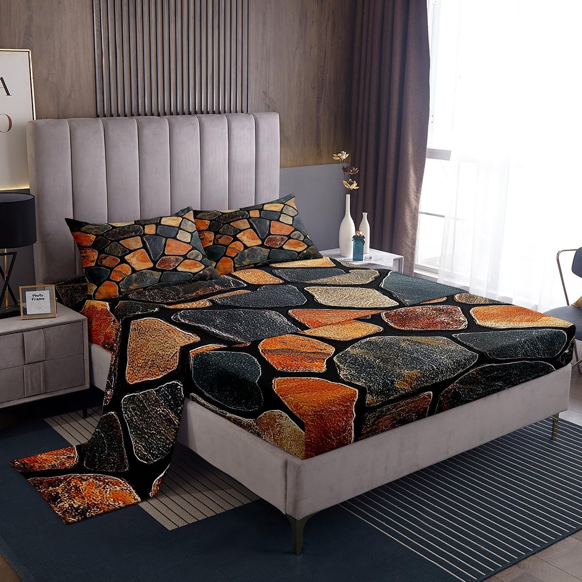 Our bed sheet is made of polyester fabric, lightweight and soft; stylish design is very suitable as room decoration for boys and girls; keep warm in winter and cool in summer; create a comfortable sleeping environment to make you fall asleep all night Range of size 1 twin fitted sheet 39 inch x 75 inch x 16 inch and 1 twin flat sheet 66 inch x 96 inch and 1 standard pillowcase 20 inch x 30 inch 1 full fitted sheet 54 inch x 75 inch x 16 inch and 1 full flat sheet 81 inch x 96 inch and 2 standard pillowcase 20 inch x 30 inch 1 queen fitted sheet 60 inch x 80 inch x 16 inch and 1 queen flat sheet 90 inch x 102 inch and 2 standard pillowcase 20 inch x 30 inch 1 king fitted sheet 78 inch x 80 inch x 16 inch and 1 king flat sheet 90 inch x 106 inch and 2 standard pillowcase 20 inch x 36 inch