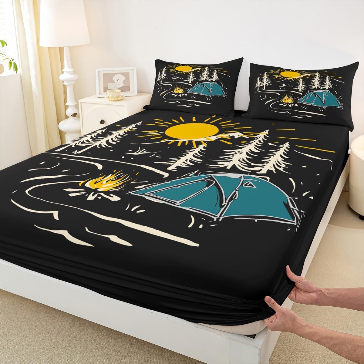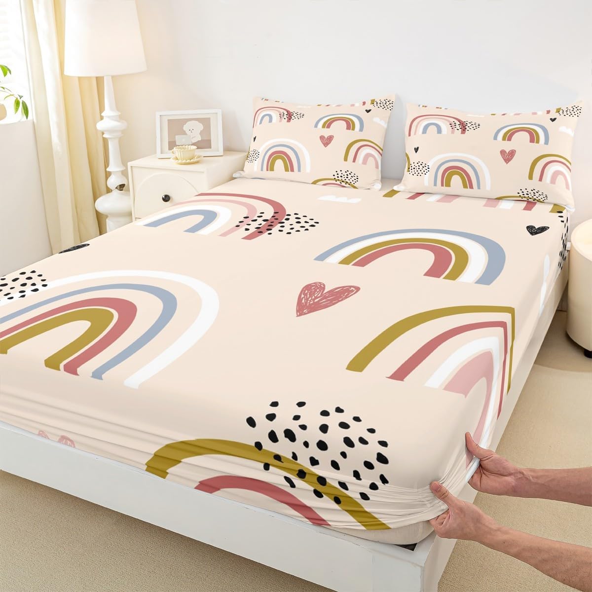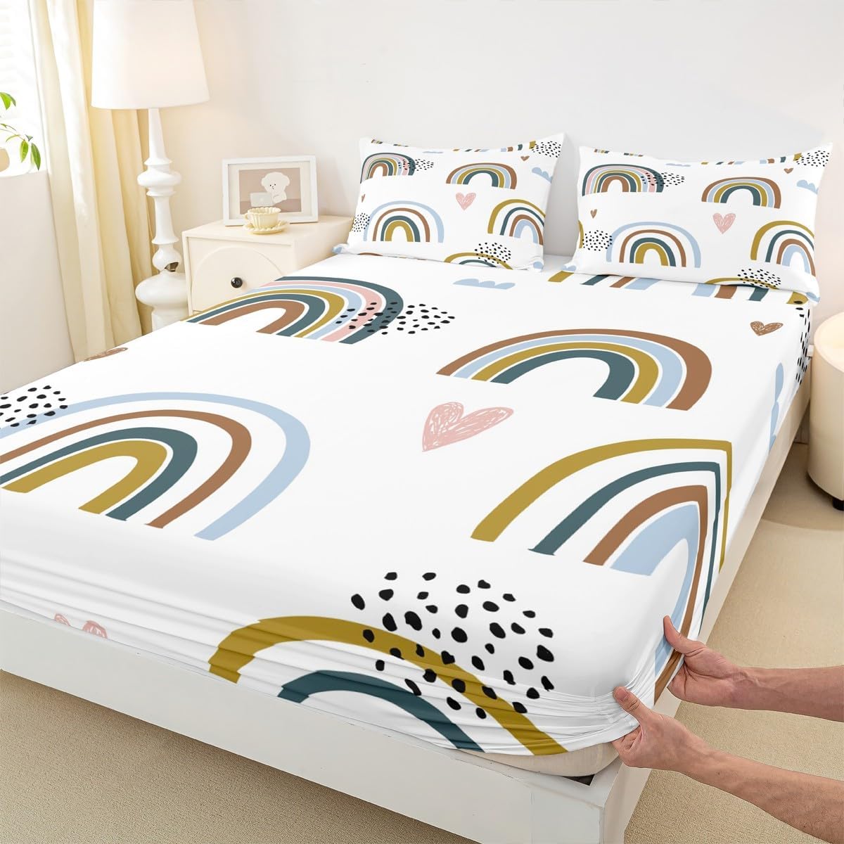 Package Include:fitted sheet,Pillowcase.No flat sheet or top sheet. Fitted sheet set pattern bedding set, simply decorating your rooms any time you want, bringing you fresh feel for year round use. Made from polyester,the sheet set offers long lasting strength,anatural resistance to shrinking and a noticeably soft hand feel. Size Information: Twin size : 1 Fitted Sheet 39"W x 75"L x 16"H ,99 x 190 x 41cm , 1 pillowcase 20" x 30", 51x75cm . Full size : 1 Fitted Sheet 54"W x 75"L x 16"H ,137 x 191x 41cm ,2 pillowcases 20" x 30", 51 x 75cm . Queen size : 1 Fitted Sheet 60"W x 80"L x 16"H ,152 x 203x 41cm ,2 pillowcases 20" x 30", 51 x 75cm . Personalize your bedroom: Beautiful design and colorful print, makes your bedroom unique and brings you a wonderful dream. Washing instructions: Machine wash separately in cold water,hang dry, do not bleach. Occasion: The soft Fitted Sheet bedding sets designed for Children ,Adult, Men, Women, Teens. This Fitted Sheet set is also suitable for full seasons, Spring, Summer, Autumn and Winter.