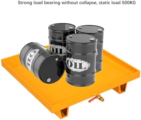 This spill containment platform is designed for safety and efficiency, featuring a three-fold rim to prevent hand injuries with a folding thickness of 18mm. Its large capacity effectively addresses overflow issues, saving space while being easy to store and use. The platform allows for combination with others to suit various needs, offering durability, stability, and reusability. Specifications include: - Product Name: Spill Platform/Spill Containment Tray/Polyethylene Pallet/Grid Pads/Containment Spill Pallet/Leakproof tray - Material: Cold rolled steel plate - Color: Yellow - Size Options: 65x65x15CM/25.6x25.6x5.91in with a 20L capacity; 125x65x15CM/49.22x25.6x5.91in with a 40L capacity - Features: Leakproof, Non Slip, Firm, Ventilation, Wear-Resistant, Strong Load-Bearing. The package includes 1 x Spill Containment Pallet. Note: Only the spill containment pallet is for sale; other items displayed are for illustrative purposes.