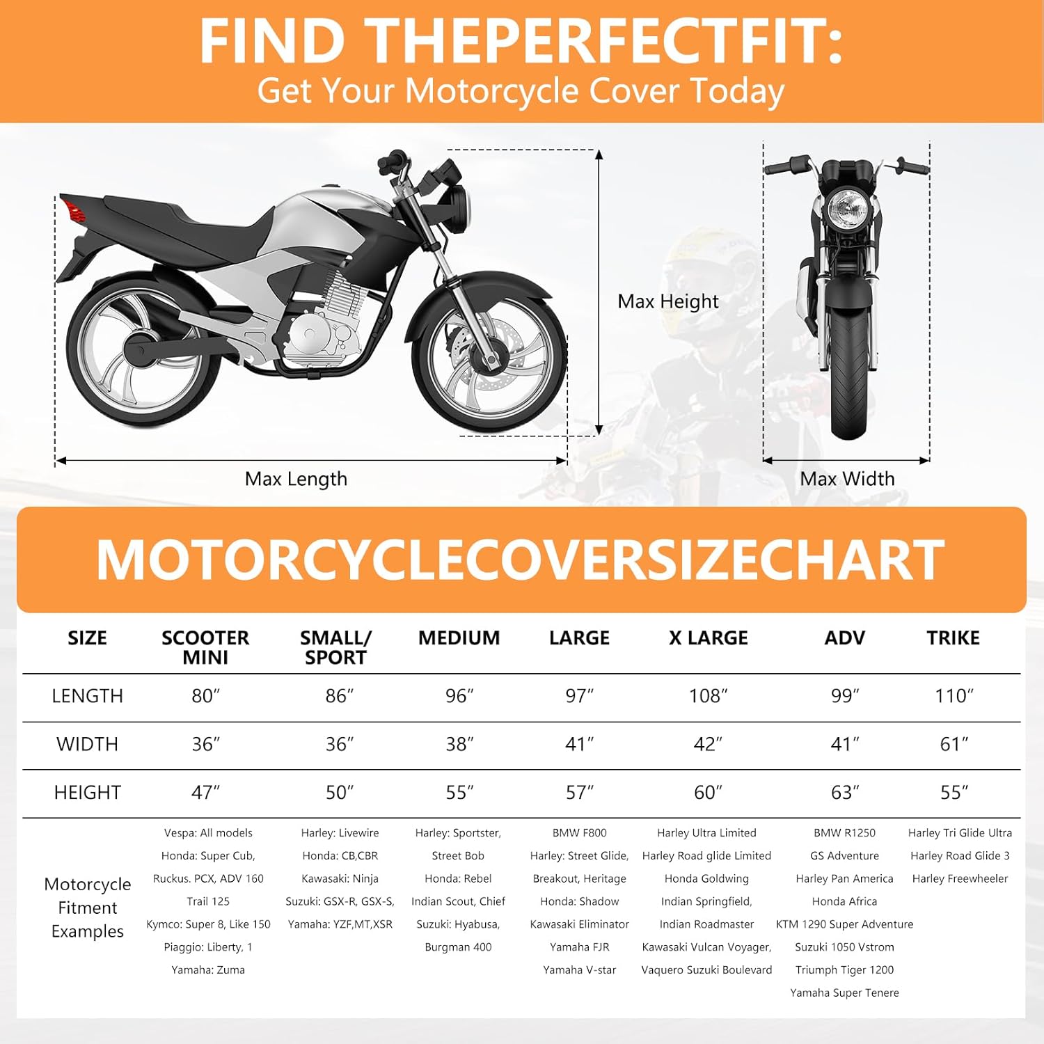 | Included Components | Heavy Duty Motorcycle Cover |
