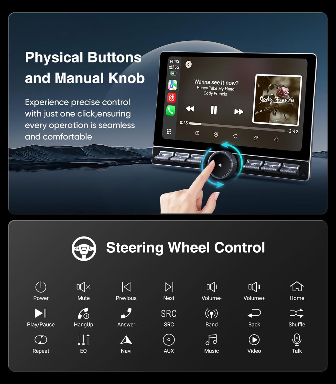 | Additional Features | Built-In Bluetooth, Mirroring Knob and Buttons, Touchscreen, RDS, Split Screen Function, Panel light, 8-Core and USB 4Pin 6Pin, 48EQ(Sound Point Control)+Premium DSP, Highest Level QLED, Equalizer, Touch Screen, Wired/Wireless Android Auto, Wired/Wireless CarPlay |