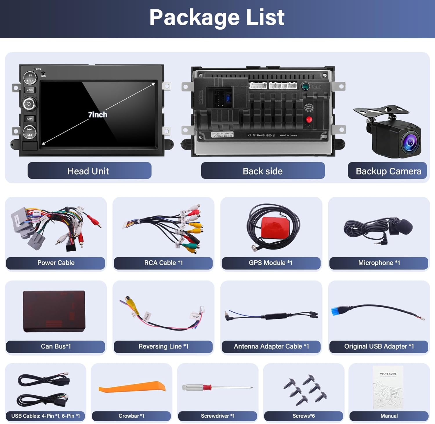 This Android car stereo is specially designed for Ford F150 (2004–2010), F250/F350 (2006–2014) and other compatible Ford models, offering a modern upgrade to your factory head unit. Featuring a responsive 7-inch touch screen, 2GB RAM + 64GB ROM, and a stable 4-core system, it delivers smooth performance for daily driving. Enjoy wireless CarPlay and Android Auto for hands-free calls, music, and navigation, along with built-in GPS and 5G WiFi support for online and offline maps. Bluetooth hands-free calling, FM/AM radio, and steering wheel control retention enhance driving safety, while the included 1080P AHD backup camera provides clear reversing visibility day and night—making this Ford Android head unit a practical all-in-one infotainment solution.