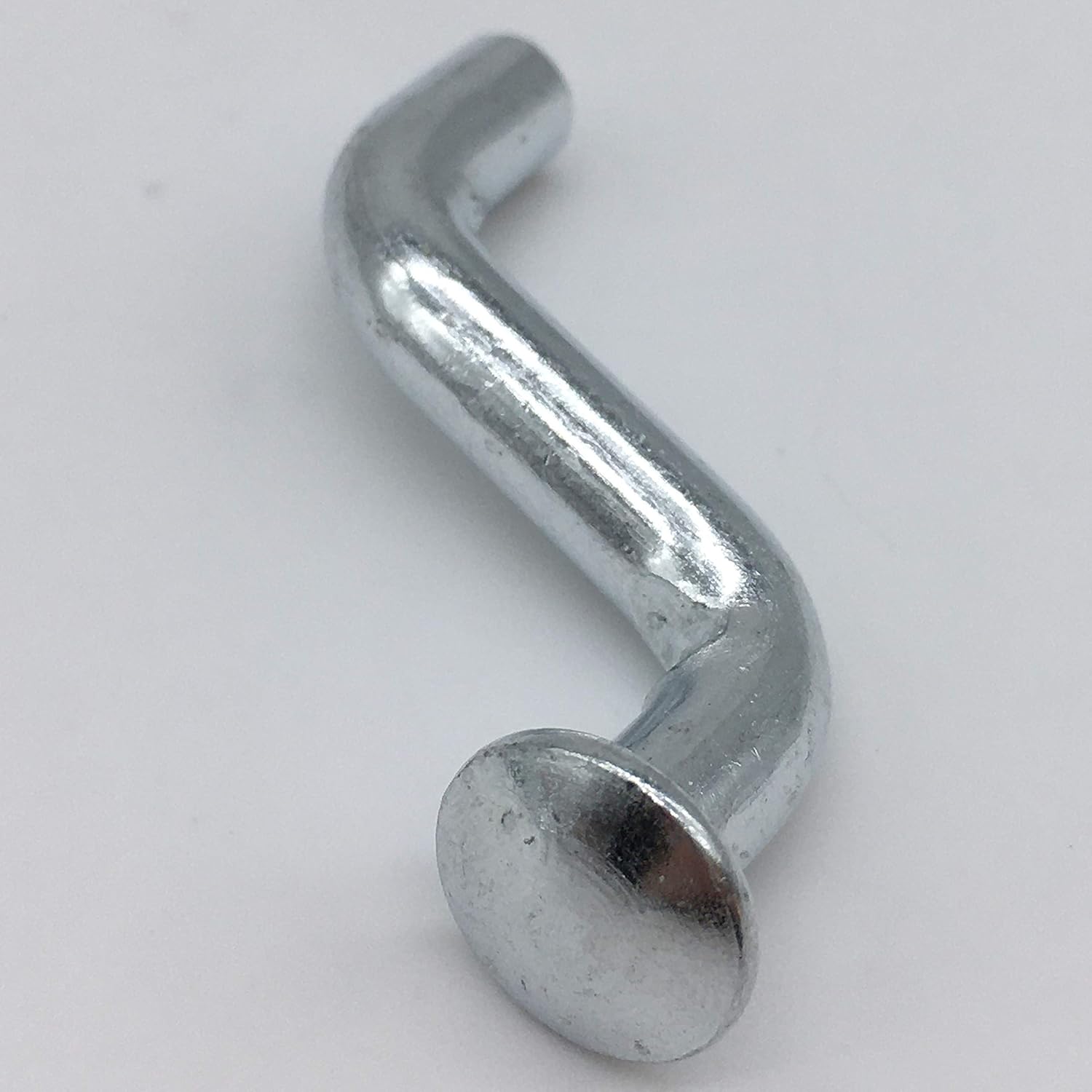 Angle: 91~89° bend at the top of pin.Measurement: +/- 0.01″ (0.254 mm) general tolerance.Drop pins offer an immediate solution to add safety to your warehouse pallet racking system and are an essential component of a pallet rack system and according to OSHA, safety clips need to be replaced when lost or damaged.RMI's ANSI MH16.1-2012 states that except for movable-shelf racks, beams subject to machine loading shall have connection locking devices (or bolts) capable of resisting an upward force of 1,000 pounds (453.6 kilograms) per connection without failure or disengagement.One of the most dangerous issues with used pallet racks is the beam to frame connection. A rack collapse is nothing to brush under the rug and as a safety manager or business owner it is your responsibility to make sure that your pallet racks are safe for your employees. A used rack system with missing or damaged safety pins can put your entire company at risk. All it takes is a small bump from a pallet or forklift and the entire rack system could come tumbling down. Pins for used pallet racks can increase safety if properly installed in your rack system and could possibly save lives. Routine rack safety inspections can improve safety in your warehouse by identifying missing or damaged safety mechanisms.Will these Pallet Rack Safety Bolts work in my used pallet rack system? Our universal pins fit in almost all selective used pallet rack systems. The key is to find the aligning holes either on the face of the cross beam or on the inside accessory hole. Almost all pallet storage rack systems are equipped with a beam to frame safety clip. This can be called a number of things including: beam locking device, j bolt, pallet rack safety bolt, universal drop pins, pallet rack j bolts, j pins, and more. All of beams should have some sort of beam to frame locking device at each connection.
