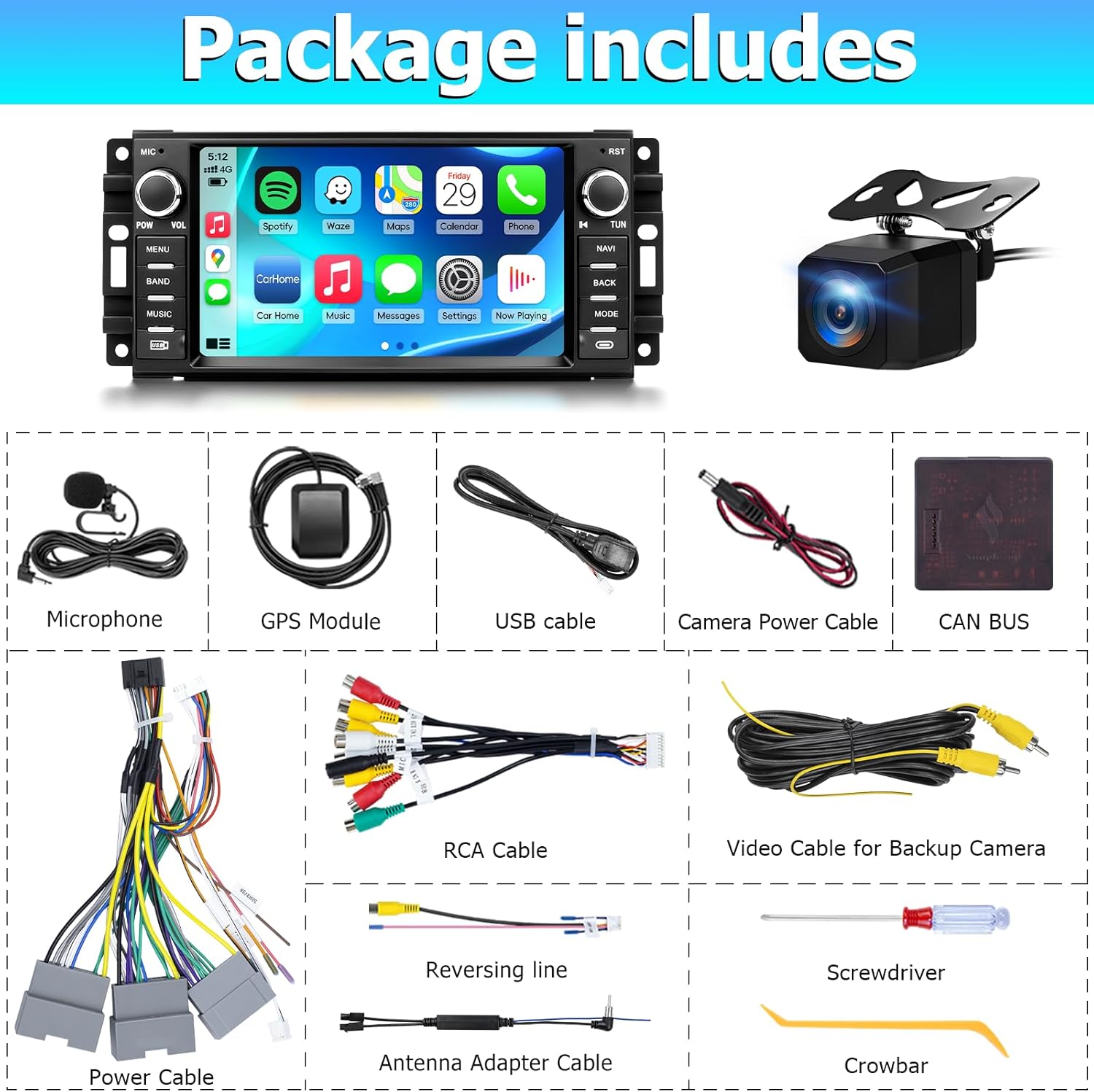 OHREX Car Radio for Jeep Wrangler JK 2007-2018 Dodge Ram 1500 2009-2012 Replacement Upgrade Stereo with CarPlay Android Auto Backup Camera 2GB+32GB