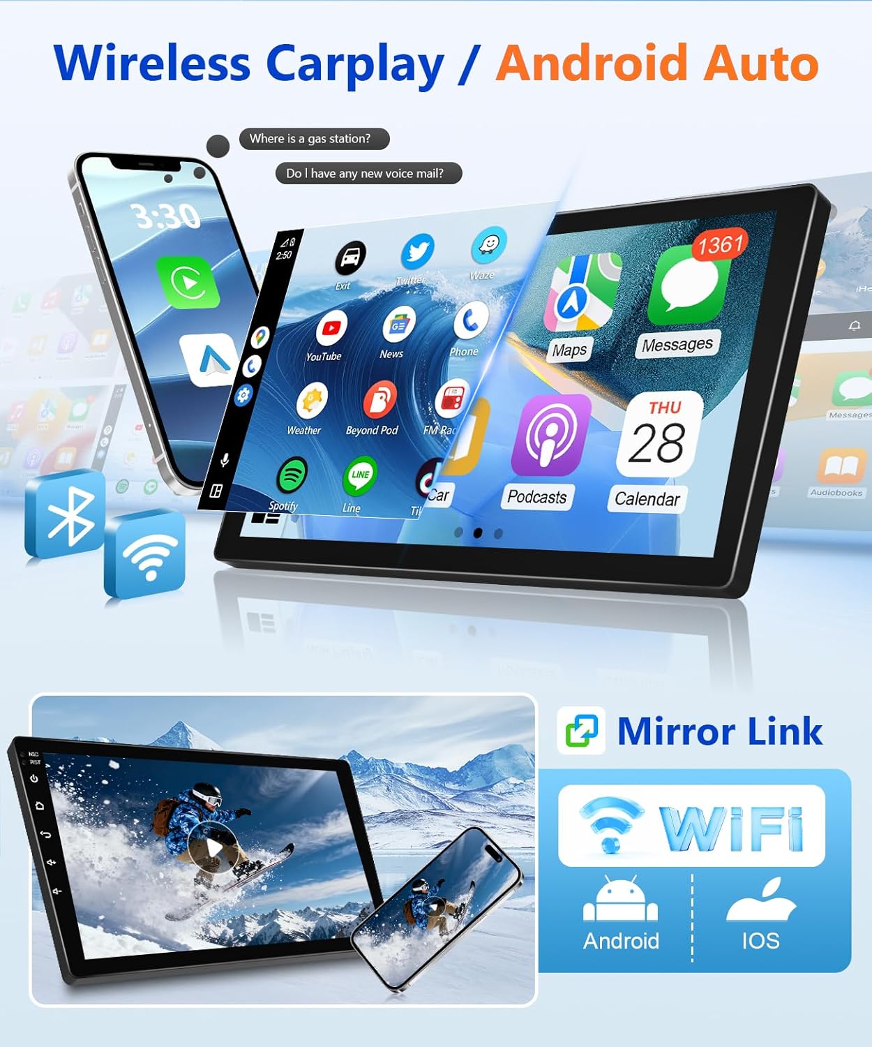 | Additional Features | 2.5D IPS Full Touchscreenen, Bluetooth, Lane Assist, Split-Screen, Multiple UI Themes, 1080P AHD Rear View Camera Input, Lane Assist, Waterproof, Steering Wheel Control, Hands-Free Calling, Voice Control, Audio Input/Output, FM/RSD/DSP Radio, EQ Adjustment, Built-In Wi-Fi, GPS Navigation, Wireless/Wired Apple CarPlay, Android Auto, Mirrorlink, Waterproof |