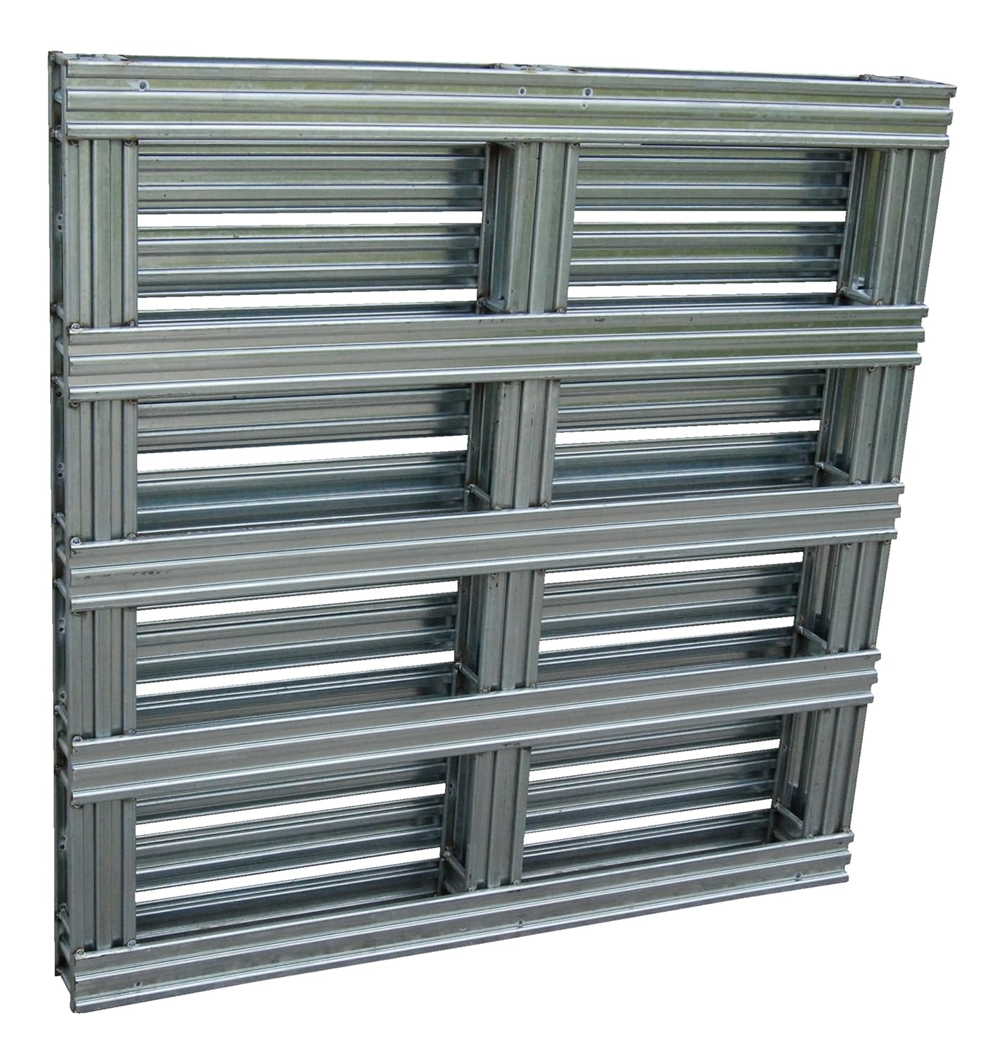 The steel pallet with Galvanized finish is heavy-duty, non reversible welded steel. Unit has a 2-way entry allowing fork truck access only. The galvanized finish is used for rust resistance.