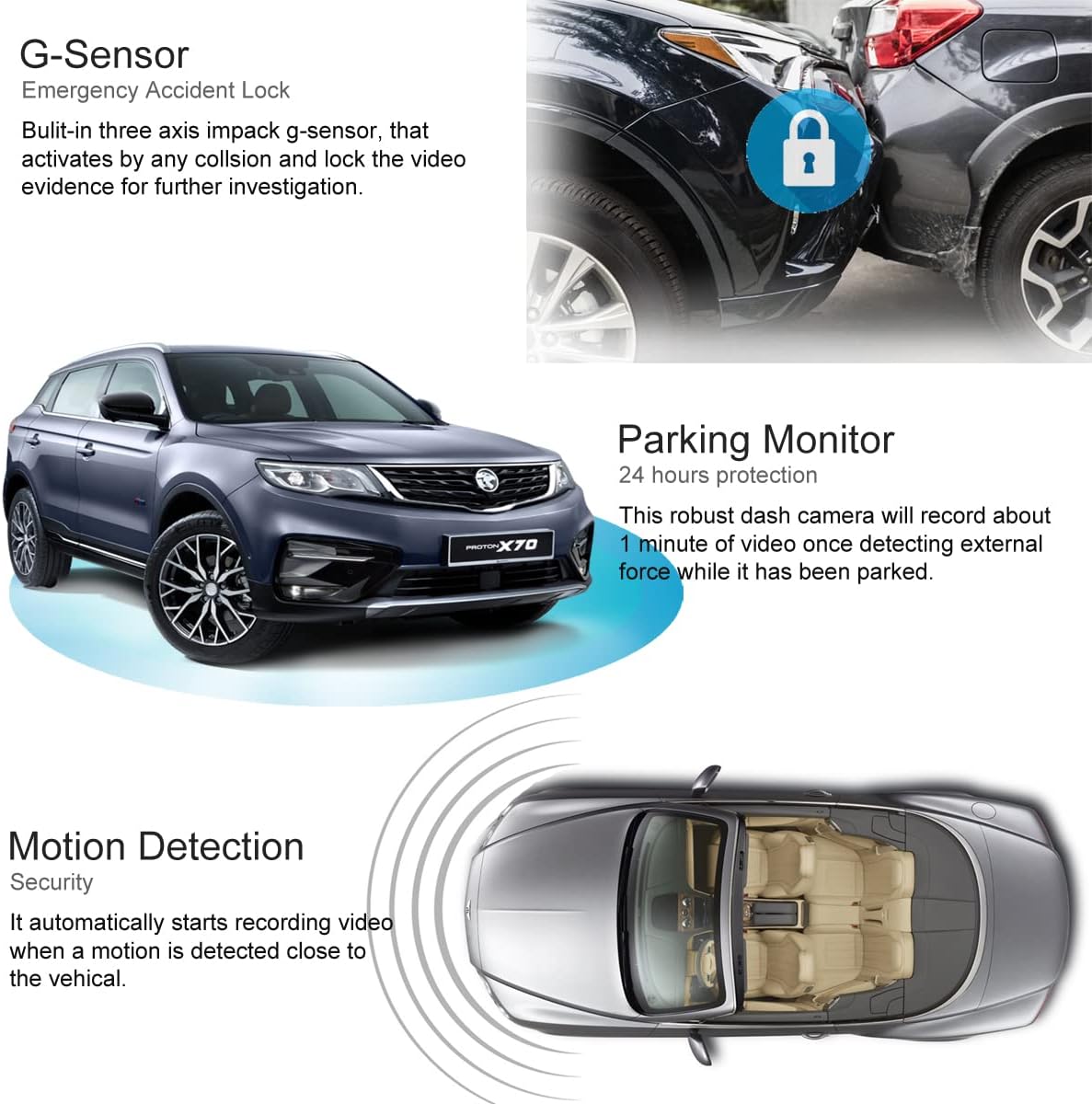 | Other Special Features of the Product | G-Sensor, Night Vision, Super Capacitor, Free 64GB SD Card, Built‒in Wi-Fi and APP connect, Loop recording, Voice recording, Accident lock, 24 hours parking monitor, G-sensor, Discreet and hidden, Super night vision |