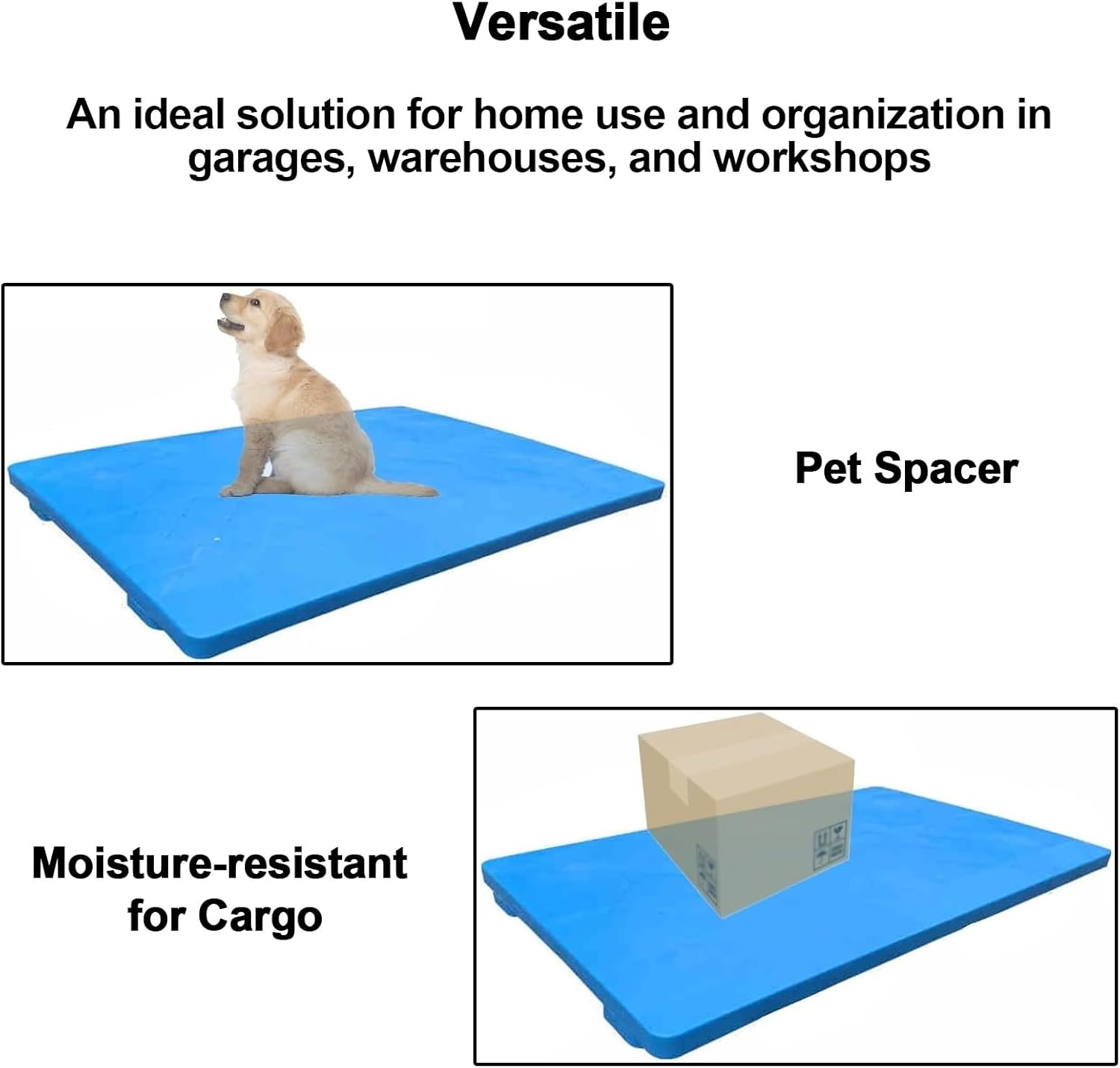 This lightweight yet sturdy pallet is ideal for dry goods and refrigerated storage applications, providing a practical solution for warehouses, storage areas, and retail locations looking to optimize their material handling systems. Features include PP material with stable performance, high-temperature resistance, lightweight and strong construction, waterproof and moisture-resistant properties for easy cleaning, a smooth and durable surface that is pressure-resistant, reinforced ribs on the back for extra strength and resistance to deformation, non-slip granules on the surface to prevent items from slipping, and rounded corners to reduce impact damage. Specifications: Product Name: Plastic Pallet, Color: Blue, Material: PP, Static Load Capacity: 2204 lbs, Dimensions: 39*20*2 in, 39*24*2 in. Package Included: 1 * Plastic Pallet.