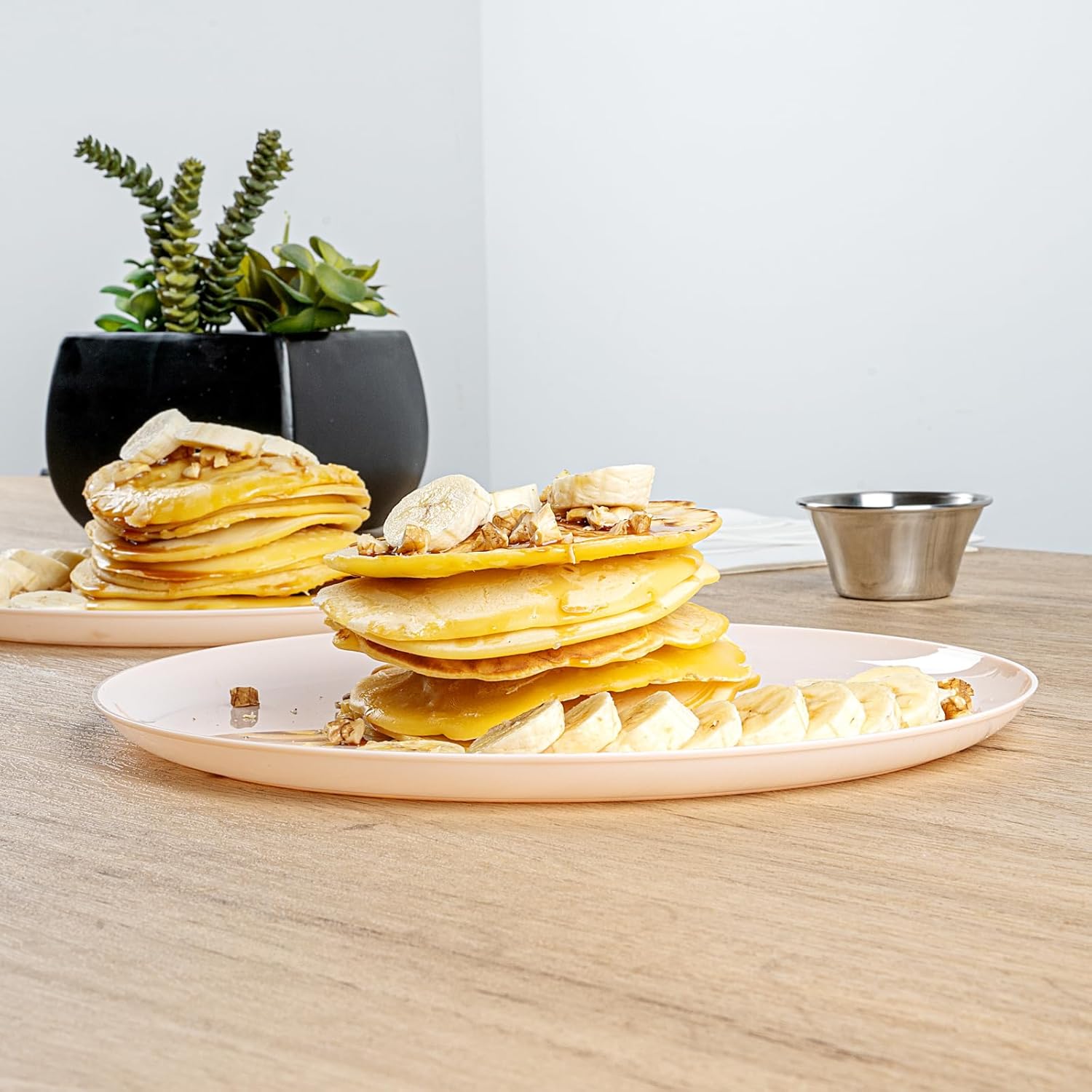 Create an aesthetic dining experience with our Moderna Round Light Pink Plastic Plates. Crafted using PS plastic, these dinner plates are capable of handling heavy-loaded foods. Reprocessable, these premium plastic plates aid in lowering the environmental impact of your event. These pink plastic plates are specially designed to handle the demands of serving warm and cold foods, remaining sturdy even at temperatures up to 150F. These round dinner plates feature a greaseproof coating, ensuring effortless cleaning after meals. With the intention of streamlining post-event tasks, these fancy plastic plates are designed to be disposable, ensuring a hassle-free experience. Featuring a light pink color scheme, these party plastic plates contribute an attractive aesthetic to your table setting. Measuring 10.6 inches in diameter, these festive plastic plates are ideal for serving all kinds of starters, entrees, and desserts. Shipped in a 200 count box.