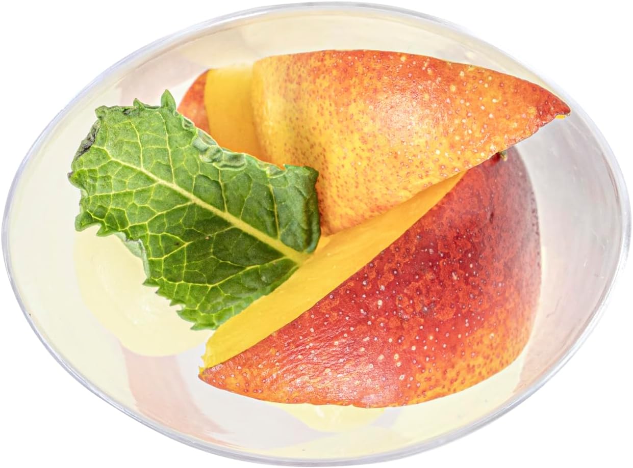 Spruce up any social gathering with the use of our Mini Serve 3-ounce Clear Plastic Mini Mezzaluna Cups. Offering a premium plastic construction, these plastic dessert cups are lightweight yet sturdy. These disposable plastic dessert cups provide a sustainable, reprocessable solution for serving bite-sized treats. With a curved rim, these transparent appetizer containers help to stylishly showcase layered tiramisu, mini cheesecakes, or other petite sweets. Constructed of food-grade plastic, these small plastic cups securely contain liquids and sauces without leaking. The tapered sides of these reprocessable cups add an elegant look while offering a comfortable grip for guests. To elegantly display decadent desserts, these heavy-duty plastic dessert cups have a crystal-clear finish. These reprocessable cups for snacks and desserts can be disposed of after use. With a capacity of 3 ounces, these plastic dessert cups measure 3.3 inches in length by 2 inches in width by 1.5 inches in height. Sold in a 100 count box.