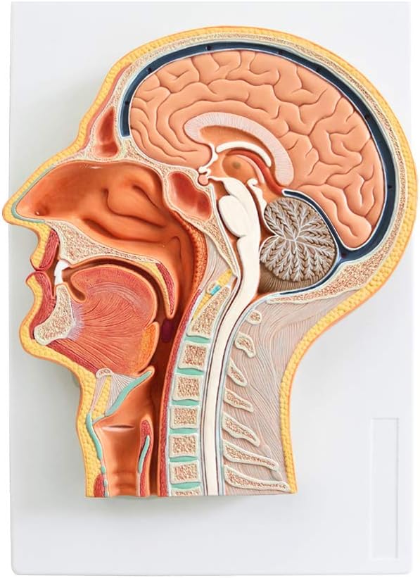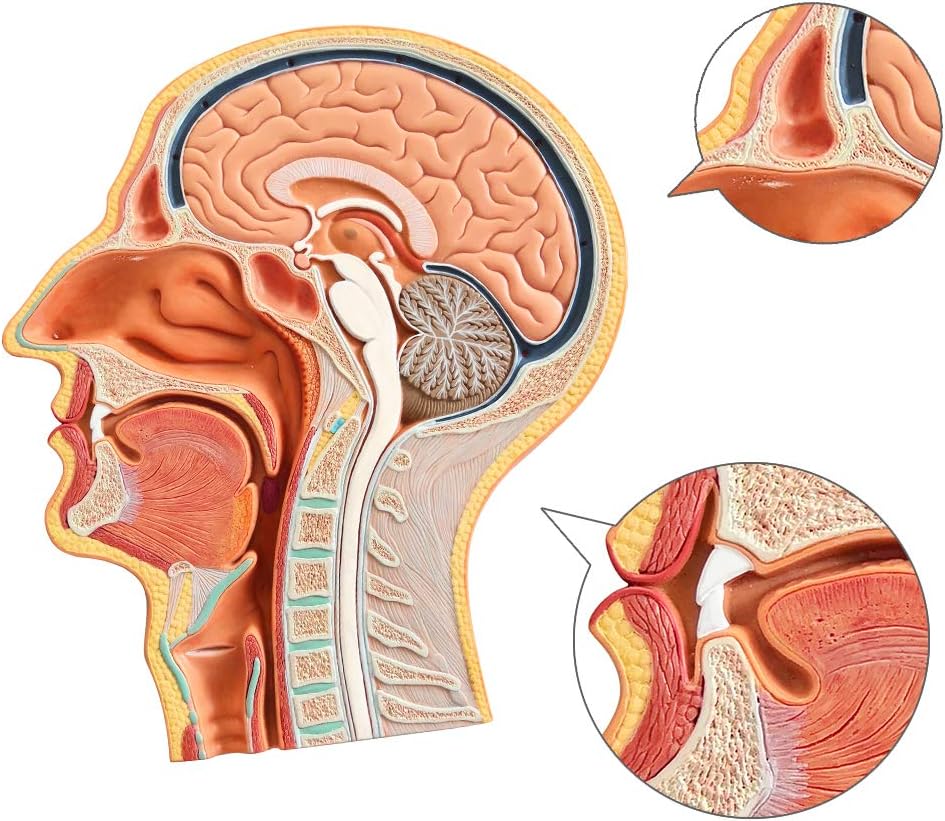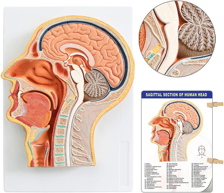 Description: EVOTECH SCIENTIFIC head consists of two parts: the skull and the face. The brain contains the brain, the face has eyes, ears, nose, tongue, and other sensory organs and the beginning of the digestive system - mouth. The mid-sagittal section of the head is modeled. This extremely fine model shows structures in the brain, spinal cord, nasal cavity, mouth, and throat, with a total of 53 indications. Specifications: Material: PVC Size: Approx. 33 x 23 x 5cm / 13 x 9 x 1inch Weight: Approx. 670g Package Included: 1 x Medical Head Model