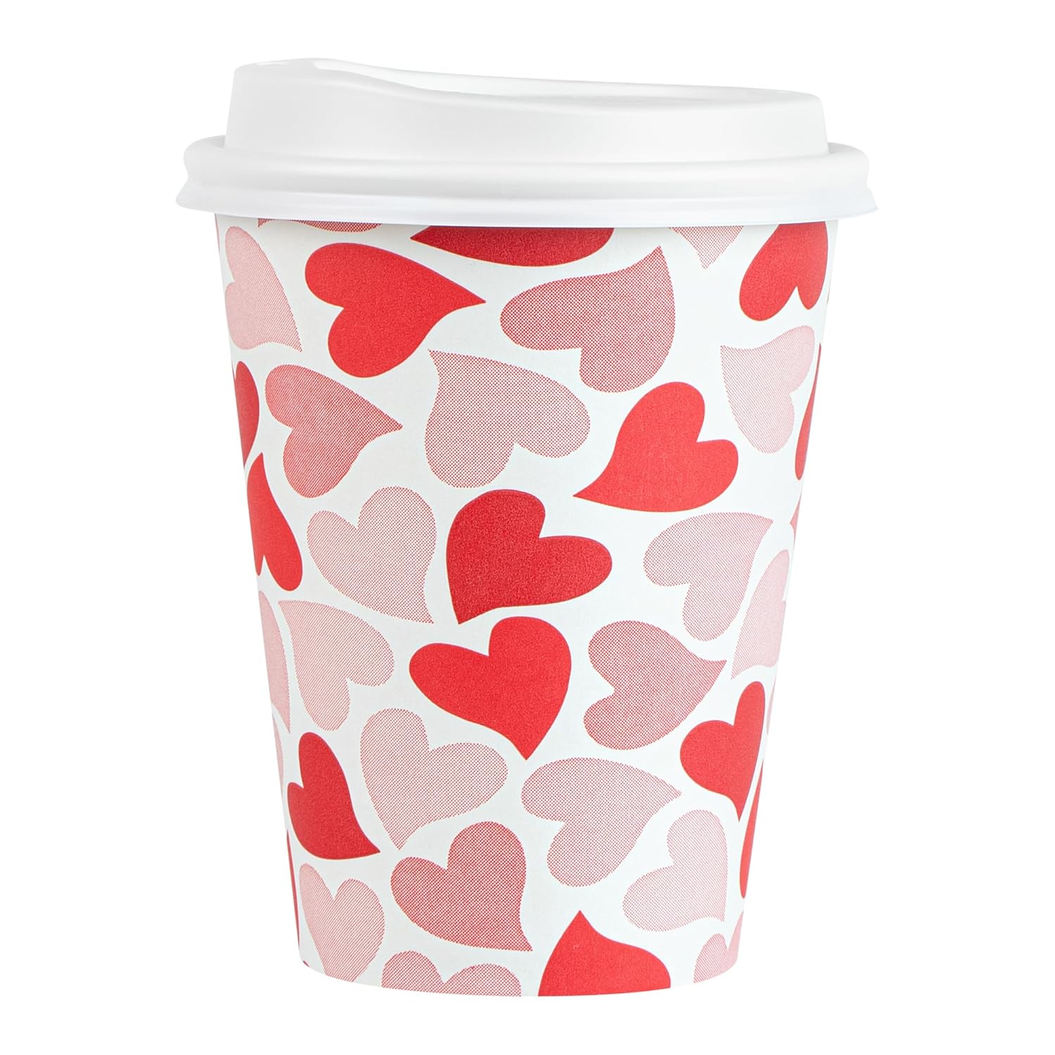 Celebrate love and warmth with our Restpresso 12-ounce Valentine's Day Paper Single Wall Coffee Cups. These coffee cups come with white plastic lids that form a secure seal, perfect for an on-the-go sipping experience. Adorned with charming hearts, these disposable coffee cups perfectly capture the spirit of Valentine's Day, adding a touch of romance to every sip. The greaseproof PE lining of these paper coffee cups ensures a no-mess drinking experience, making them ideal for busy coffee shops. These hot drink cups feature a rolled rim and provide a smooth flow of your beverage for a comfortable drinking experience. Crafted from premium paper, these 12-ounce cups are durable and suitable for serving hot and cold drinks. Designed with secure seams, these disposable cups for coffee minimize the risk of potential leaks. Adorned with a "recycle me" message on the bottom, these 12-ounce coffee cups encourage guests to dispose of them in a sustainable way. These hot cups with lids can be discarded after use for an efficient post-drink cleanup. With a capacity of 12 ounces, these coffee cups with lids measure 3.5 inches in diameter by 4.68 inches in height. Sold in a 400 count box.