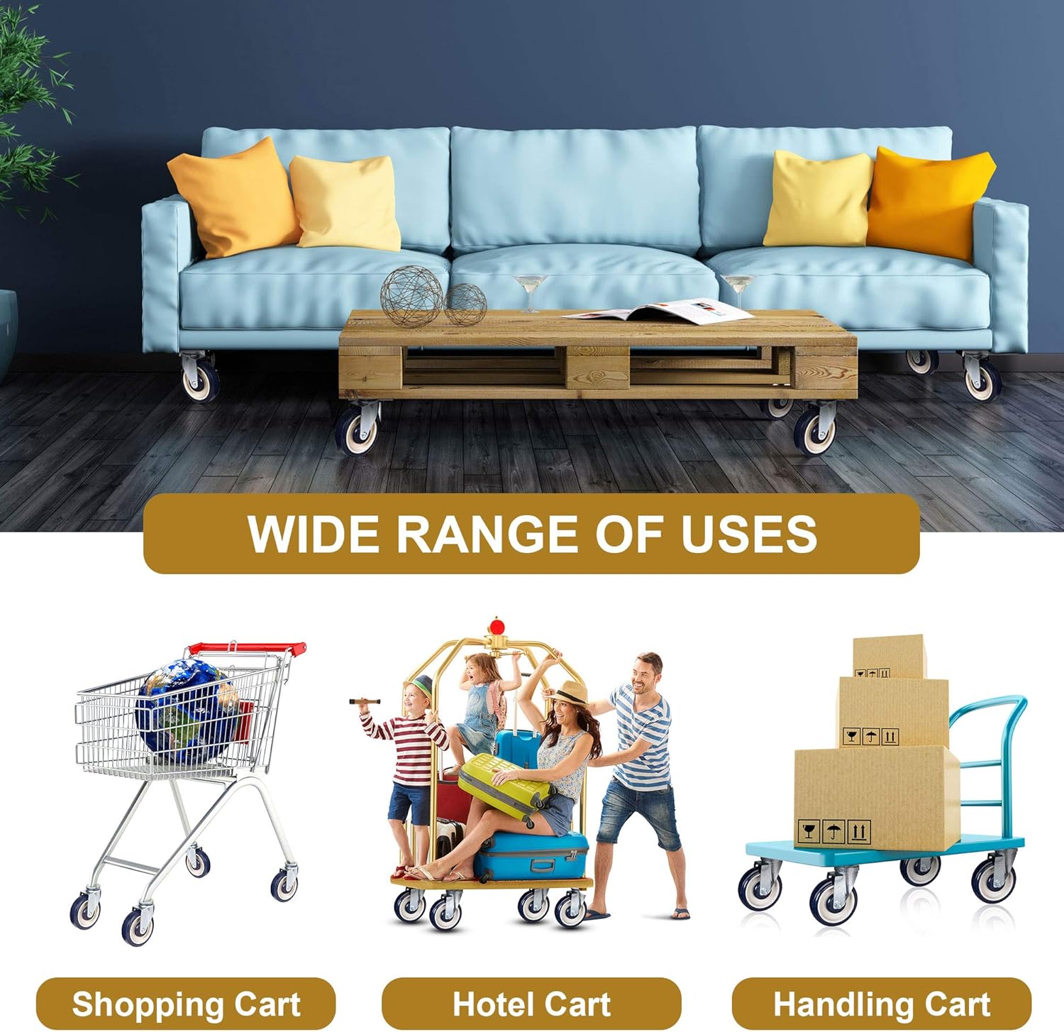 "The Shopping Cart Wheel integrates beautiful, practical, safe and other elements is a choice you should not miss. Product Name: Shopping Cart Wheels Material: polyurethane Wheel diameter: 5inch Hub Width: 1.63inch Load capacity: 350 LB Axle: 5/16"" Color: blue and beige Package includes: 20pcs polyurethane wheels+20pcs Bolts & nuts Bolts Length:2.3inch Product selling point: ✨1. The high-quality materials have made the shopping wheel excellent in use and have a longer service life. ✨2. The caster wheels adopt a silent noise reduction design, which runs smoothly and is not easy to jam. ✨3. Shopping Cart wheels are widely used and can be used in various occasions. "