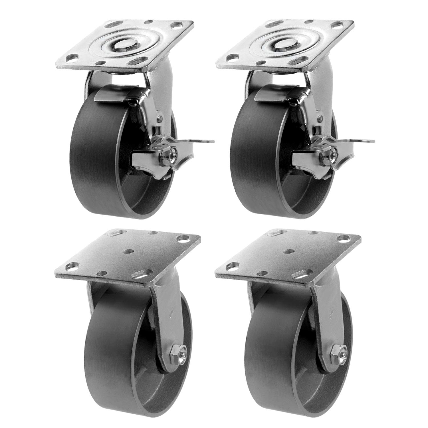 SY America 5" 4 Pack Plate Caster, Heavy Duty Steel Cast Iron Wheel w/Top Plate Caster Extra Width 2 inches 4000 lbs Total Capacity (5 inches Pack of 4, Silver 4 Swivel)