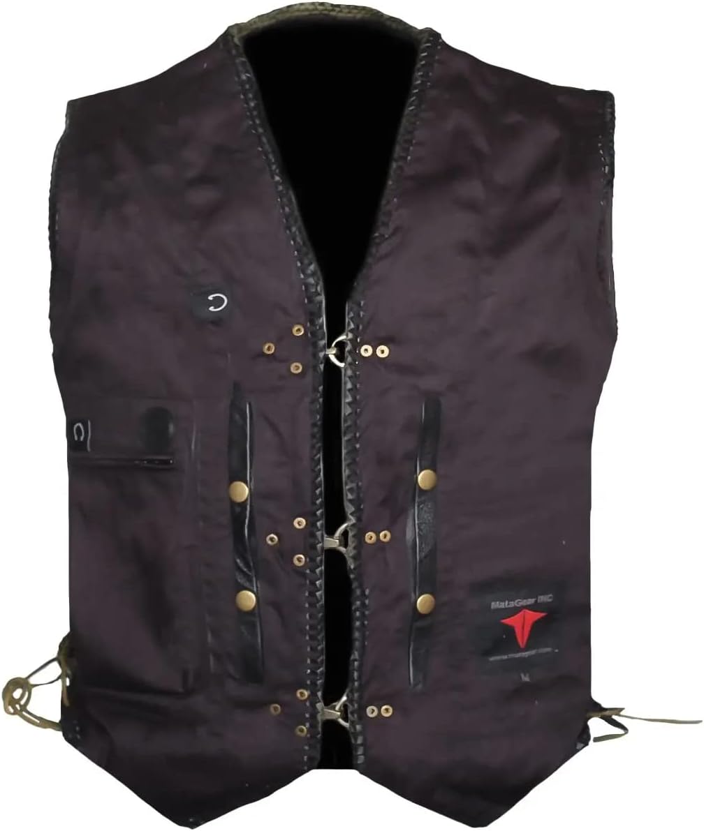 Description Bullets: Made of premium grade cowhide leather Beautiful Triple Stitching throughout the vest with a solid texture Side buckles for greater flexibility Fish Hook Loop Style Vest with buckle closure Two outside Pockets Concealed Carry Interior Pockets Single panel back > Lifetime Manufacturer Product Warranty US Standard Sizing Sizing Please see size chart in the images section. Send us a message for any questions you have. Thank you for visiting us today.