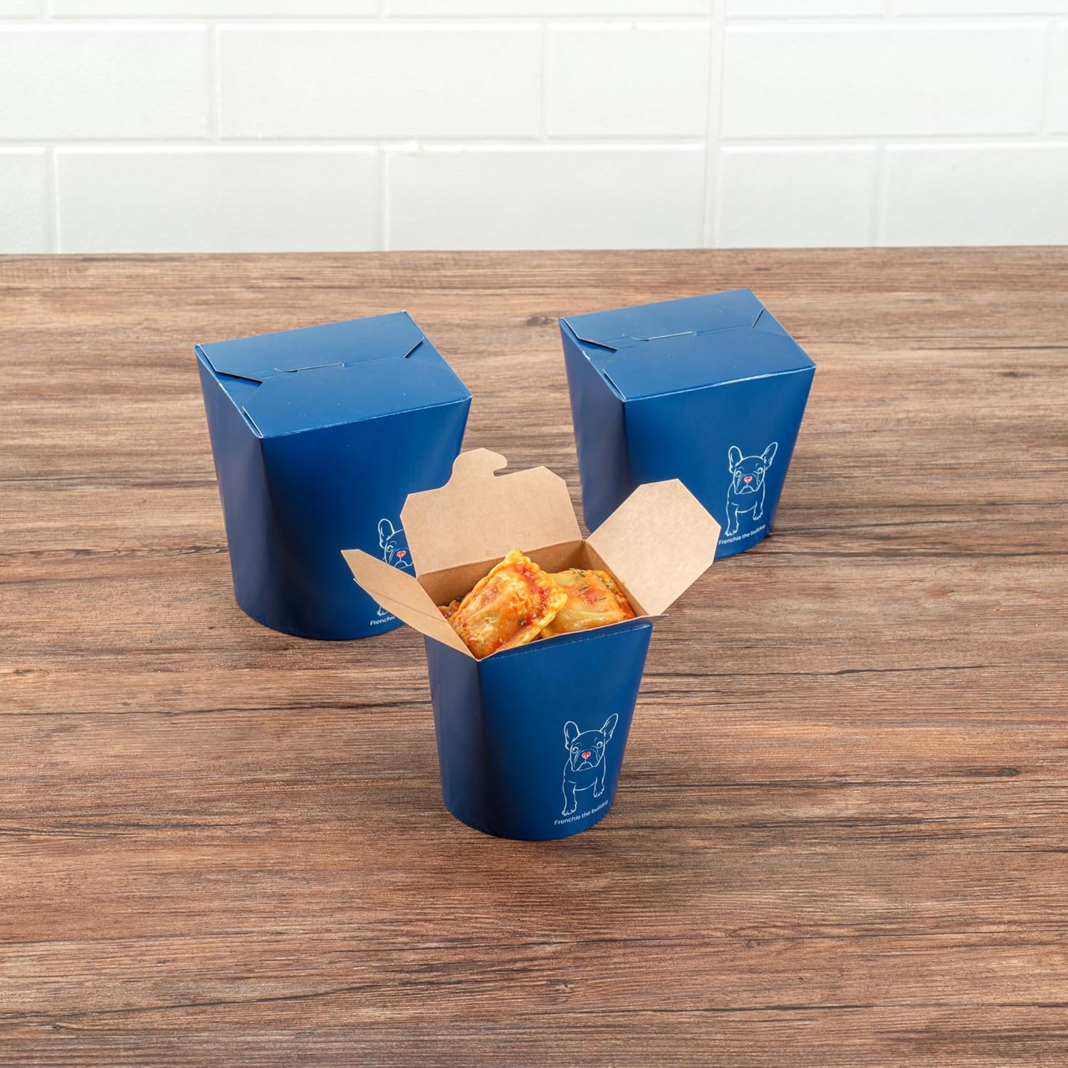 Turn your regular noodles into a gourmet experience with our Bio Tek 16-ounce Round Frenchie Paper Round Noodle Take Out Containers. The built-in tab lock with a foldable design of these Frenchie paper take out boxes securely seals in contents for easy transport or storage. The grease-impervious interior of these PE-lined paper noodle boxes avoids messy leaks. Featuring a sturdy paper construction, these round paper noodle take out boxes are durable enough for hot or cold foods. Efficiently freezable, these paper take out boxes enable you to securely store your leftovers. These 16-ounce noodle takeaway boxes have an adorable Frenchie design that makes them ideal for themed parties or foodservice establishments. With a capacity of 16 ounces, these round containers are ideal noodle dishes. Measuring 3.3 inches in length by 3 inches in width by 4 inches in height, these containers stack efficiently to save space. Sold in a 50 count box.
