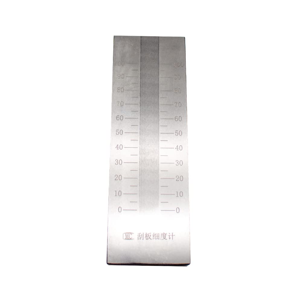 Fineness Plate Qxd Fineness Gauge 0-25-50-100um Optional Description:1. This fineness meter is made of alloy steel wear-resistant material and is durable. 2. Applicable to GB/T1724-93, ISO1524, GB/T13217.3-91 standard. 3. Scraper fineness gauge is made in strict accordance with GB / T 1724-89, ISO1524 standard. 4. It mensurates paint particles’ size and particle distribution in the dope, printing ink and other liquid to control quality during producing, storage and using. 5. Scraper fineness gauge is widely used in many industries, such as paint, plastic, printing ink, paper, ceramic, medicine, food and so on. 6. Scraper fineness gauge is flat steel with groove on the surface. 7. The groove depth is changed from maximum at one side to zero at the end. 8. The groove depth value Marked on the flat steel to read the particles’ size. 9. The particle distribution’s unit is um or Hegman, from 0-8 Hegman. 10. Hegman=100 um, 4 Hegman=50 um, 8 Hegman= 0 um. 11. Using: Put some particles on the deeper groove, then use scraper to scrape them from deeper to low groove. 12. We can read the particle’s size on the point there are more roughness particles. Specification: Range: 0 to 25μm, 0 to 50μm, 0 to 100μm, 0 to 150μm (optional) Technical parameters: Executive standard; GB/T1724-89 Fineness range: 0-25, 0-50, 0-100, 0-150 Graduation value: (2.5, 5, 5, 5) μm Structure size: scraper 155 × 50 × 12mm Inclined groove: 13×120mm Scraper: 68 × 40 × 6.5mm Package including: 1 x Fineness Meter
